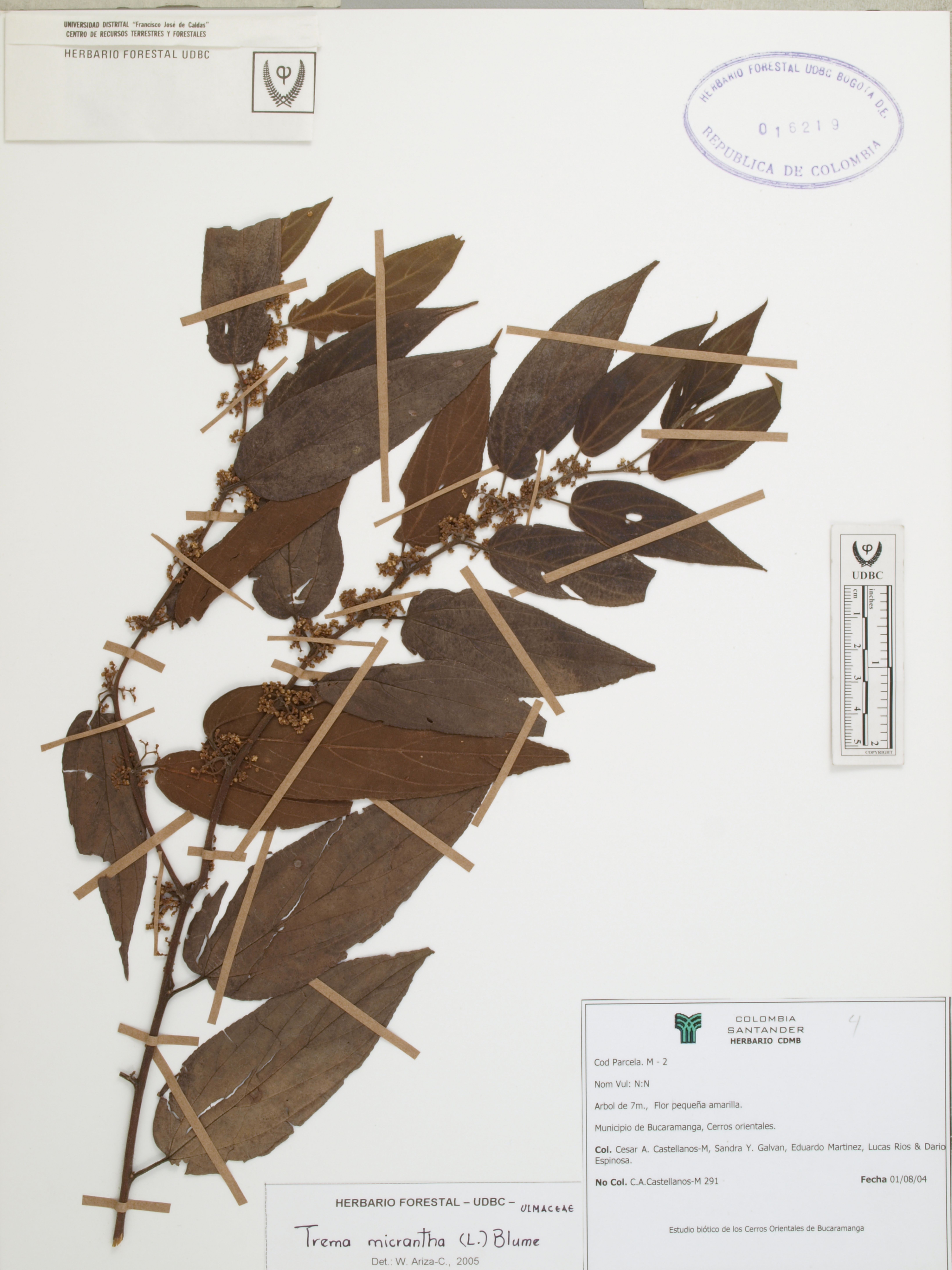 Fotografía del ejemplar Castellanos, C. 291, determinado como Trema micranthum en el año 2005