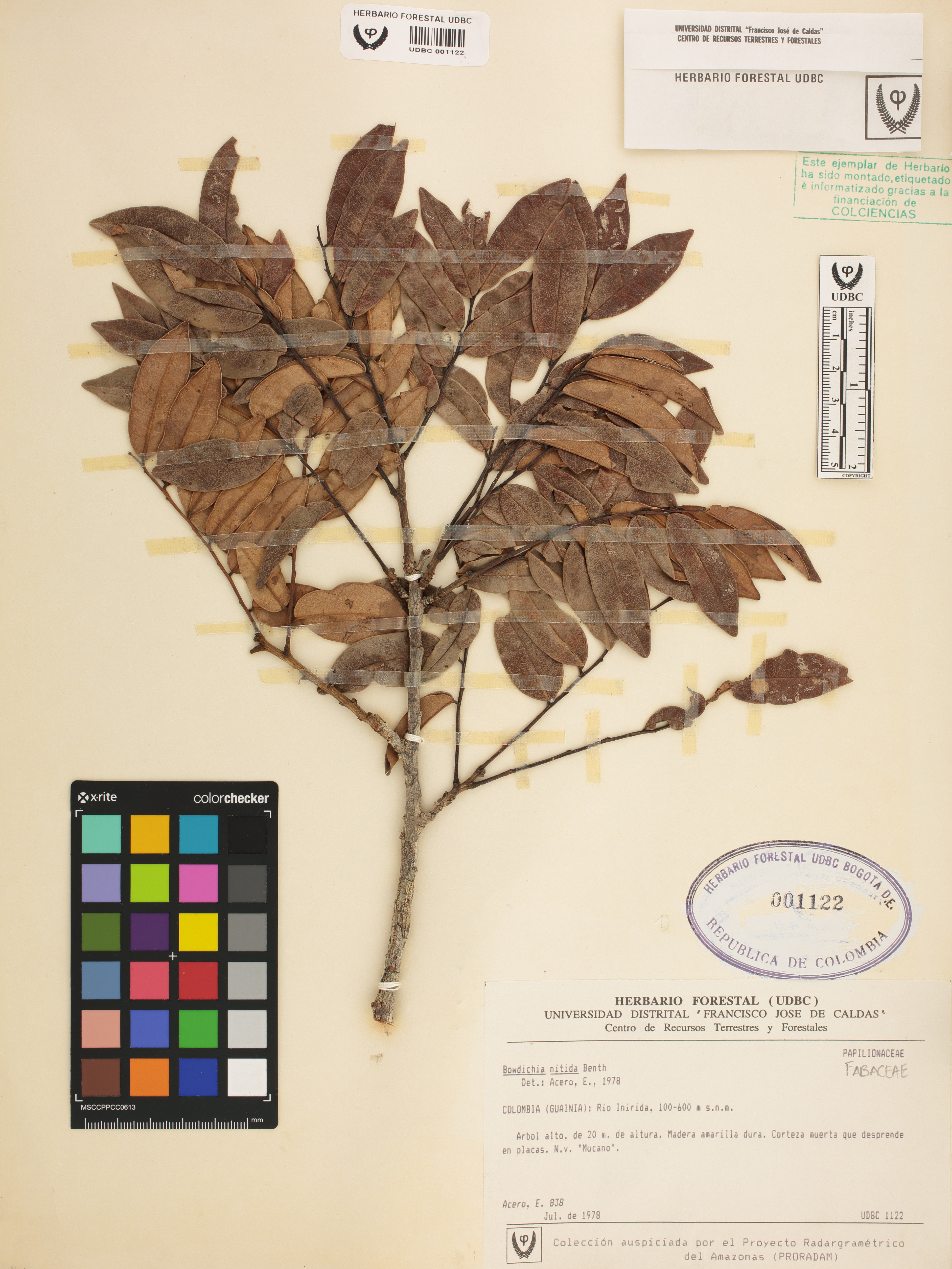 Fotografía del ejemplar Acero, E. 838, determinado como Bowdichia sp. en el año 2023