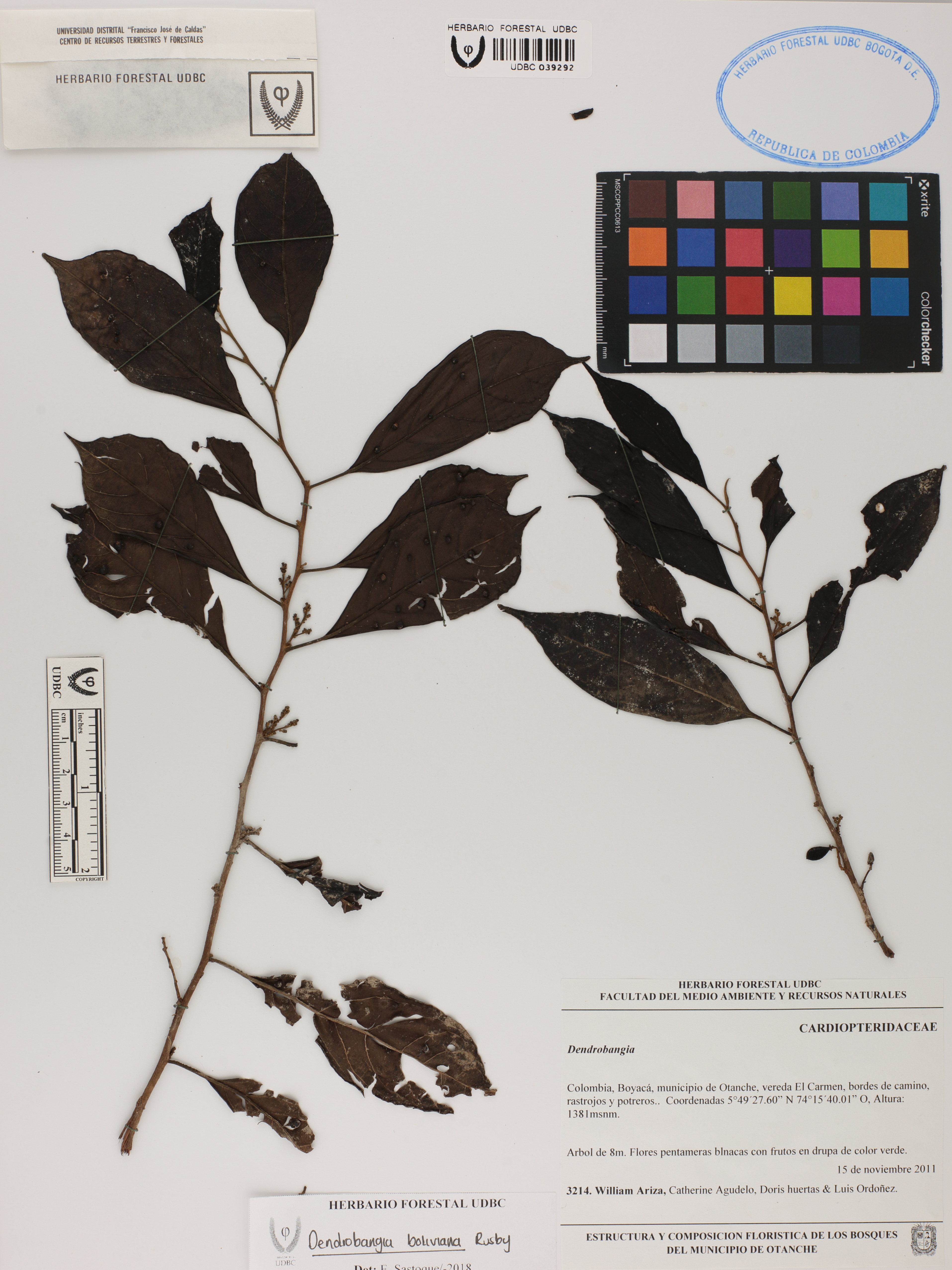 Fotografía del ejemplar Ariza, W. 3214, determinado como Dendrobangia boliviana en el año 2018