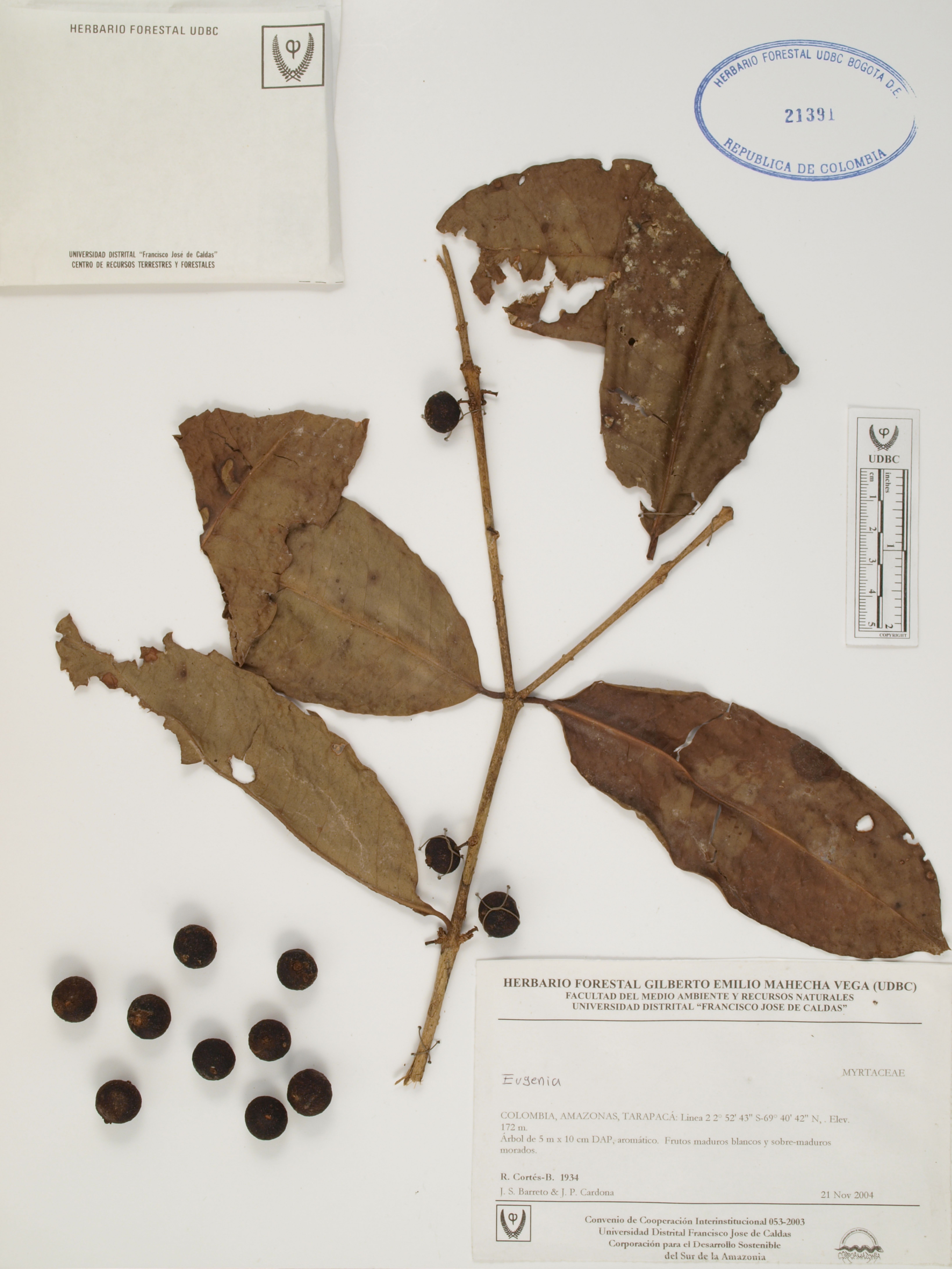 Fotografía del ejemplar Cortés-B., R. 1934, determinado como Eugenia sp.