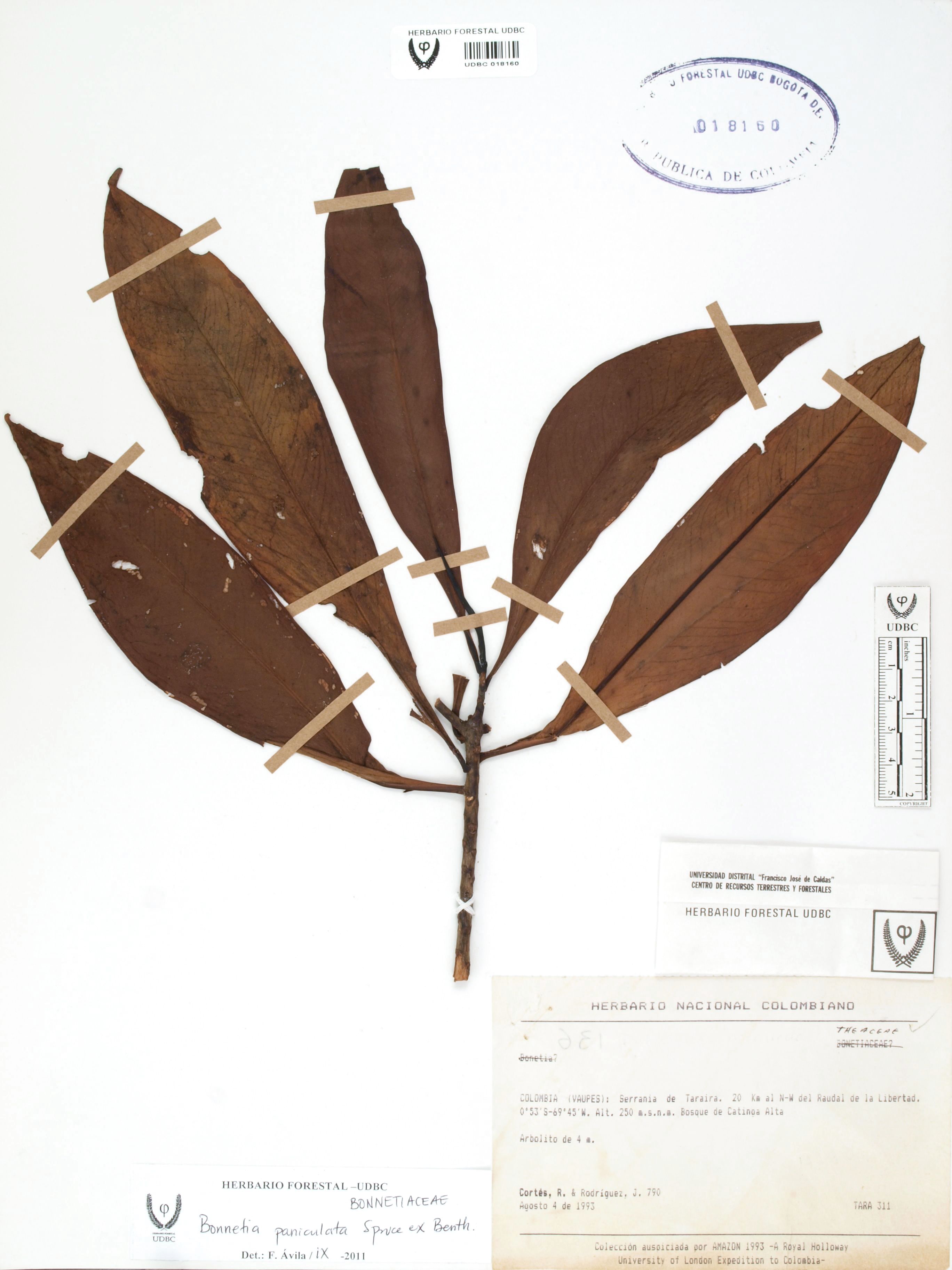 Fotografía del ejemplar Cortés-B., R. 790, determinado como Bonnetia paniculata en el año 2011