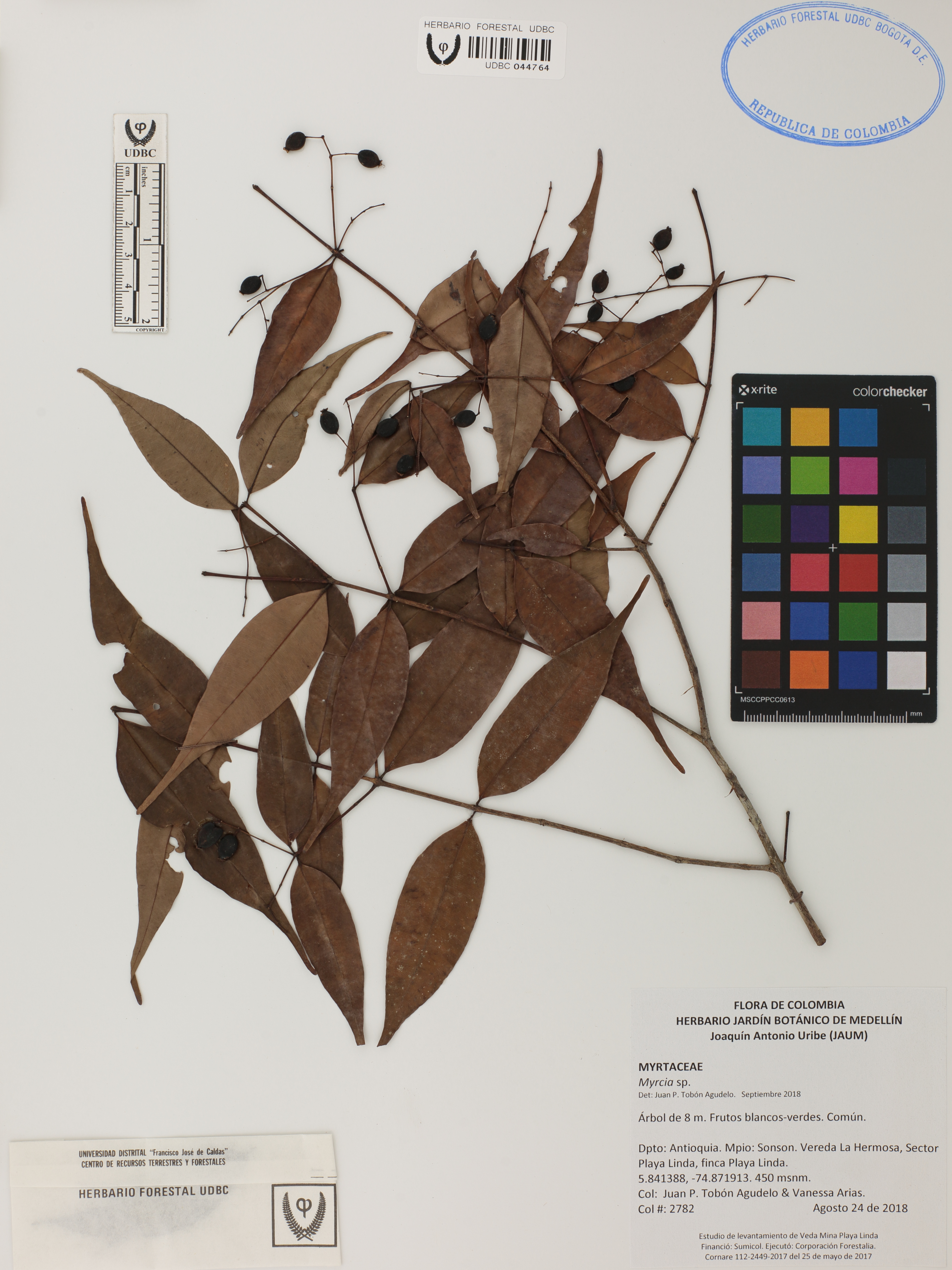 | dc.description | Fotografía del ejemplar Tobón-Agudelo, J. 2782, determinado como Myrcia sp. en el año 2018 | |