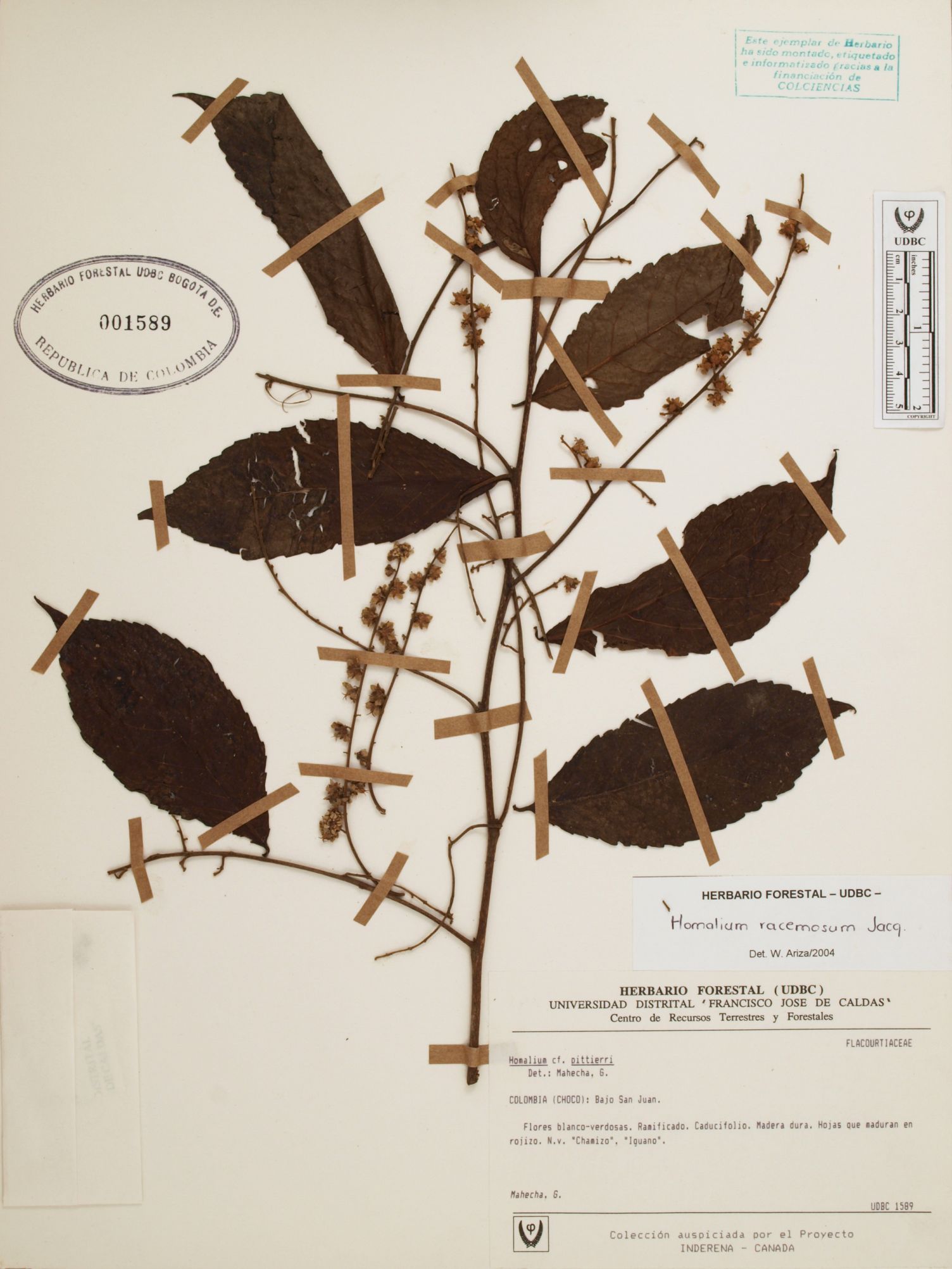 | dc.description | Fotografía del ejemplar Mahecha, G., determinado como Homalium racemosum en el año 2004 | |