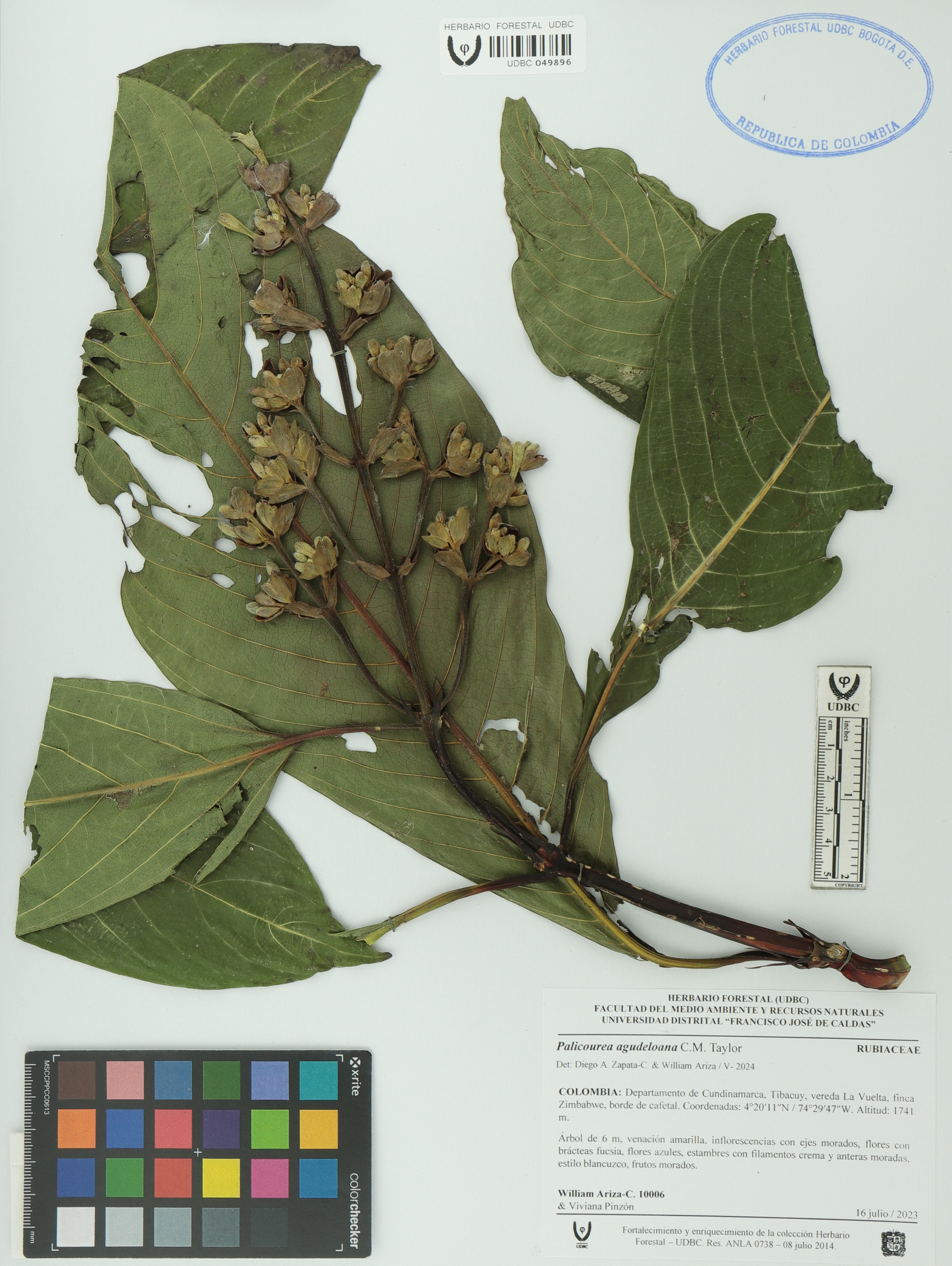 Fotografía del ejemplar Ariza-C., W. 10006, determinado como Palicourea agudeloana en el año 2024