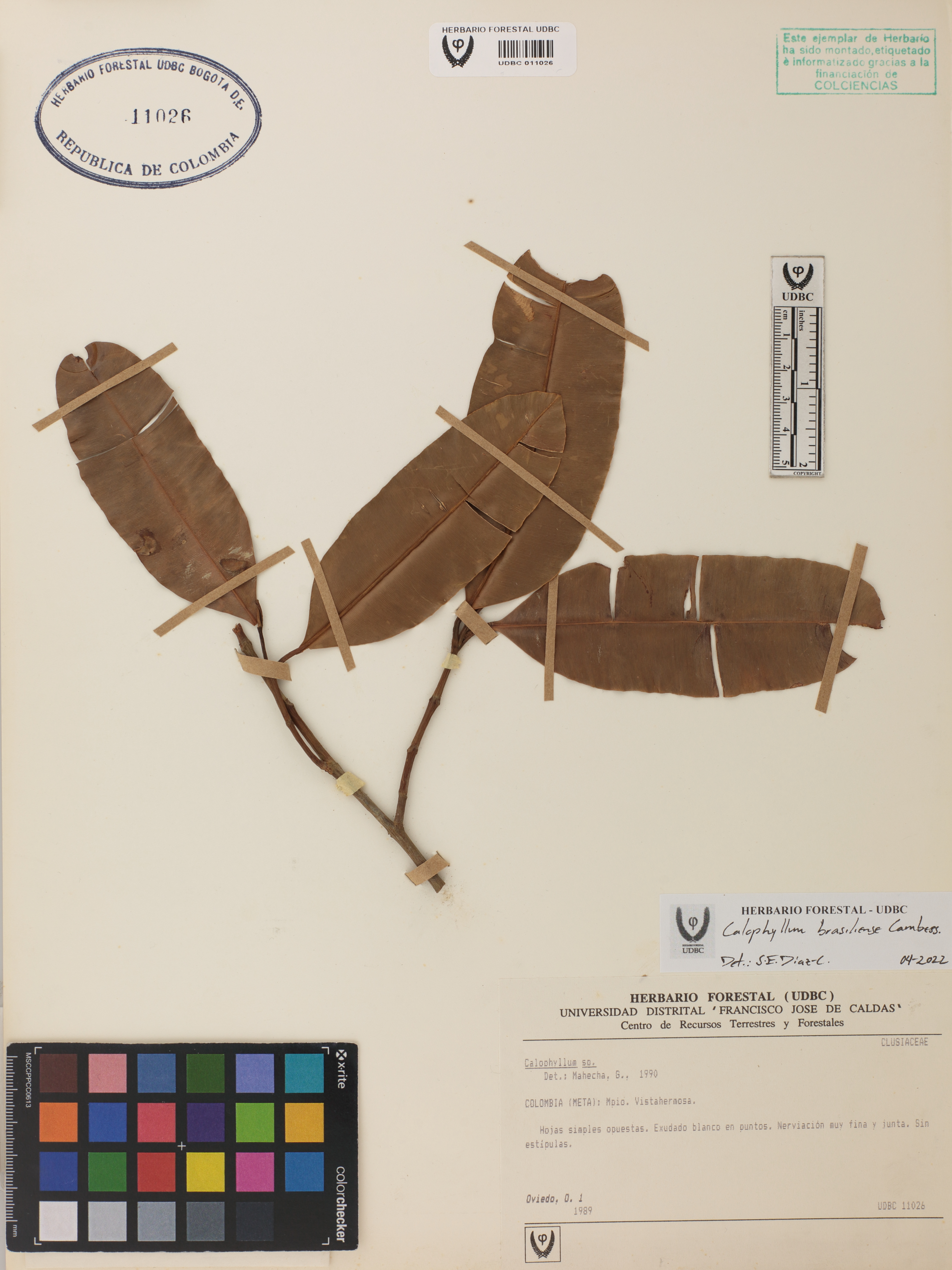 Fotografía del ejemplar Oviedo, O. 1, determinado como Calophyllum brasiliense en el año 2022