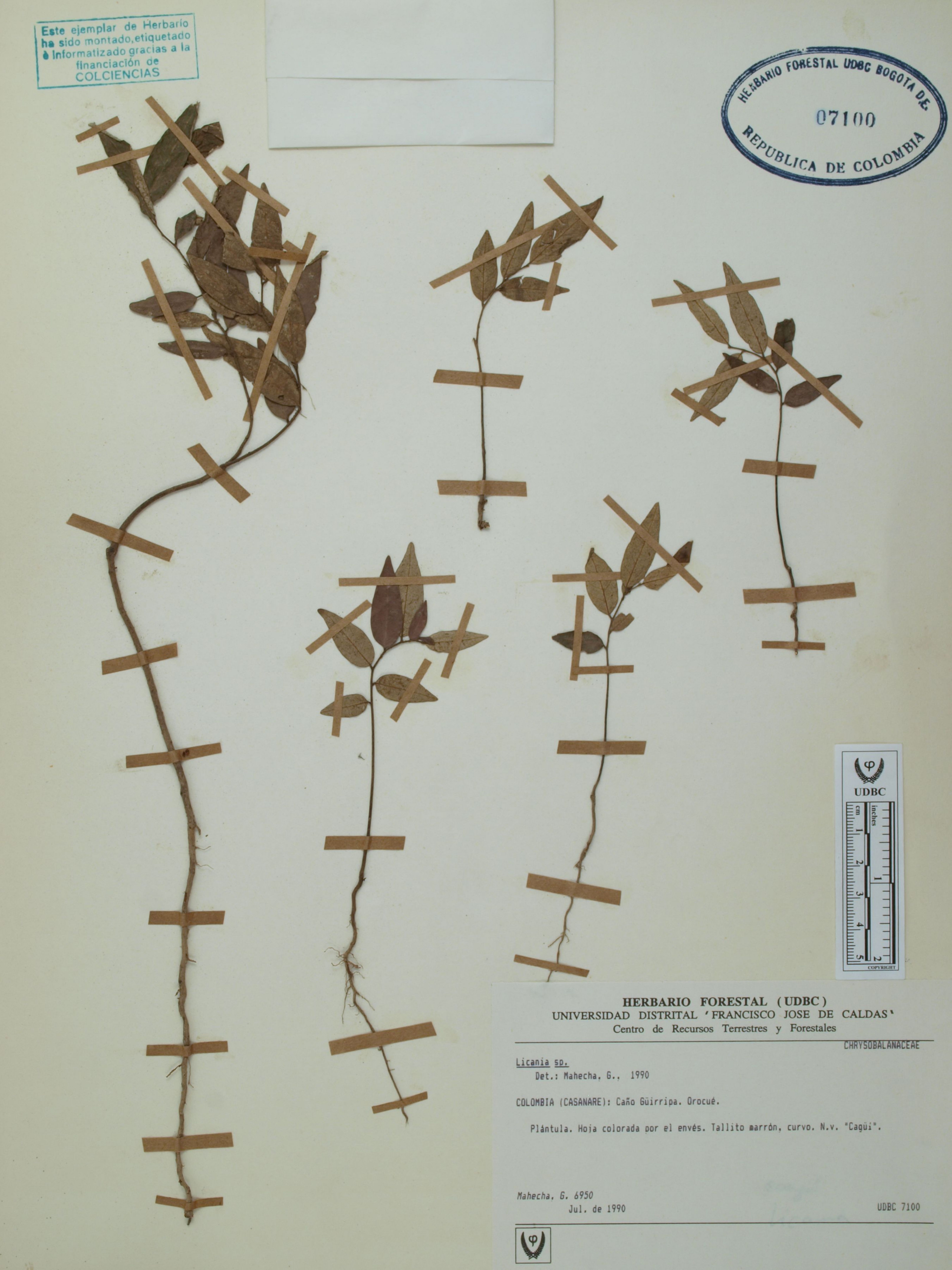 | dc.description | Fotografía del ejemplar Mahecha, G. 6950, determinado como Licania sp. en el año 1990 | |