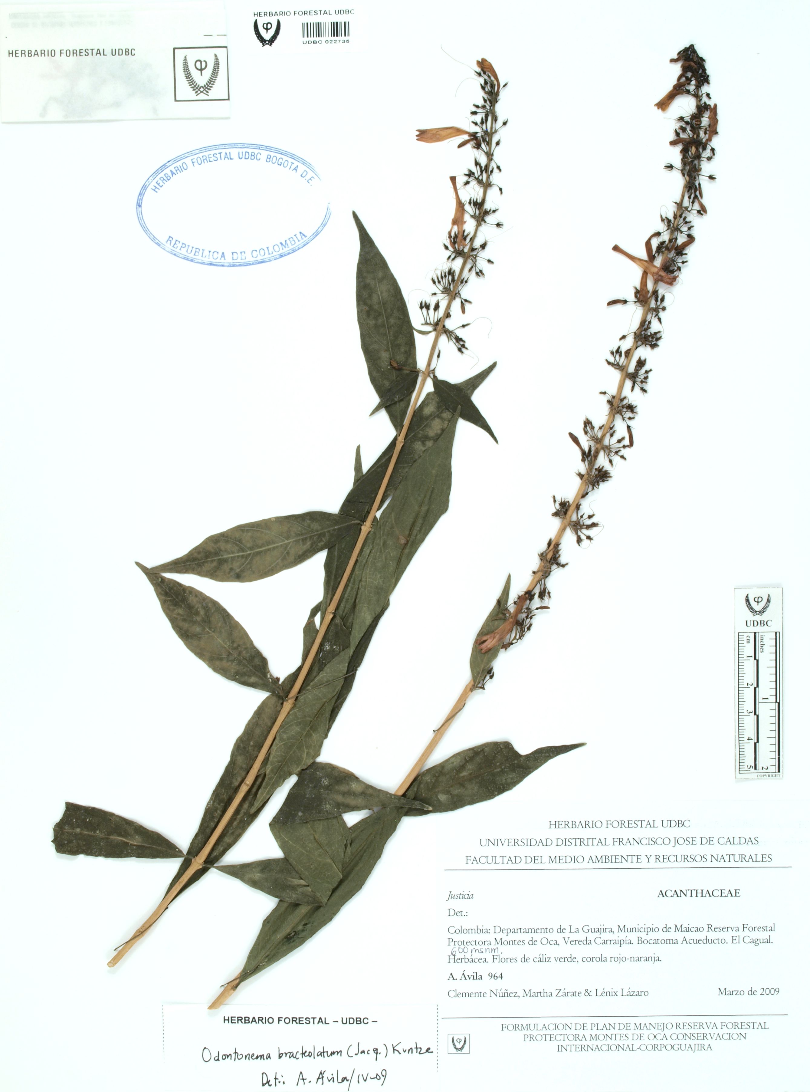 Fotografía del ejemplar Ávila, A. 964, determinado como Odontonema bracteolatum en el año 2009