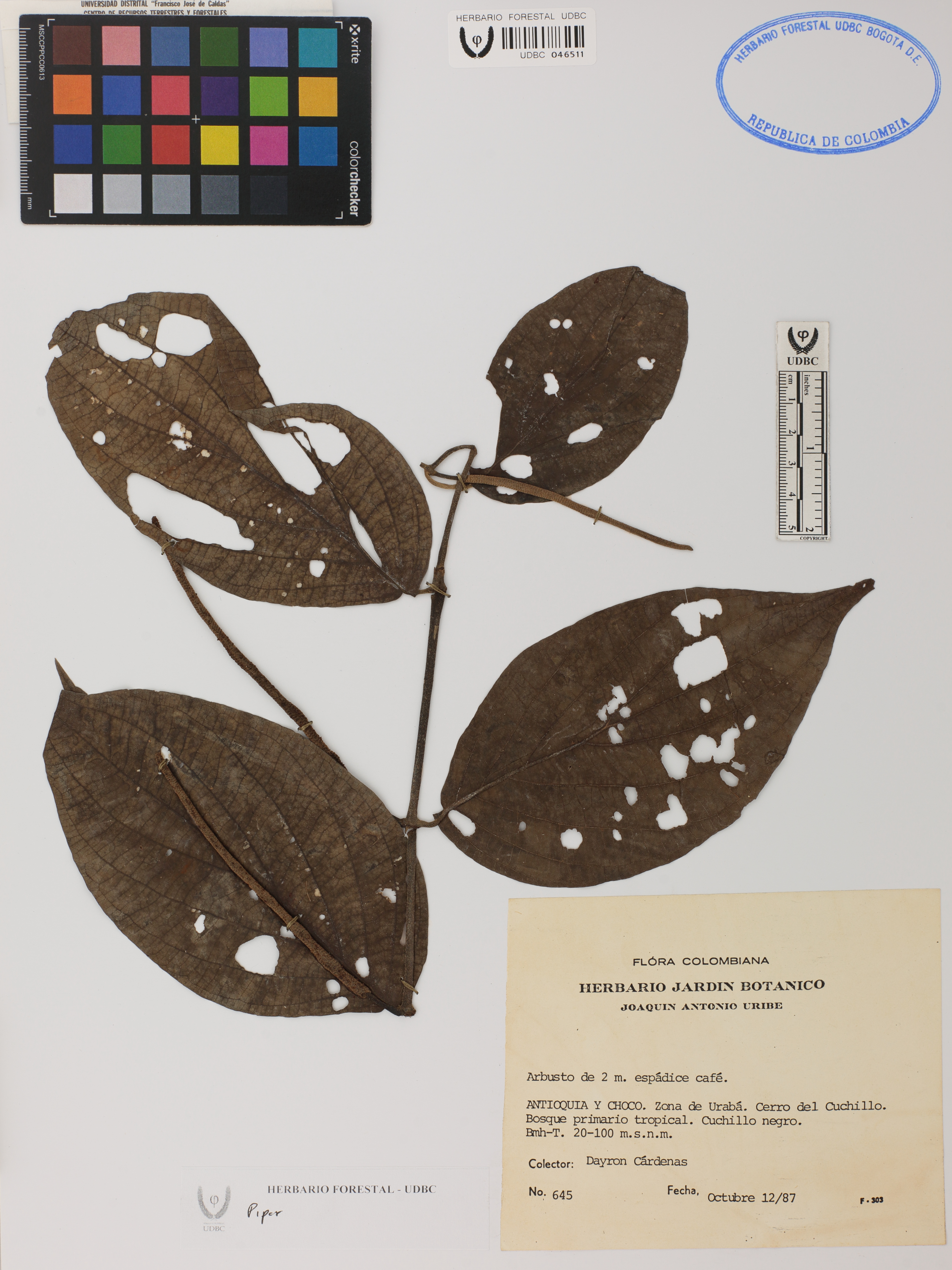 | dc.description | Fotografía del ejemplar Cárdenas, D. 645, determinado como Piper sp. | |