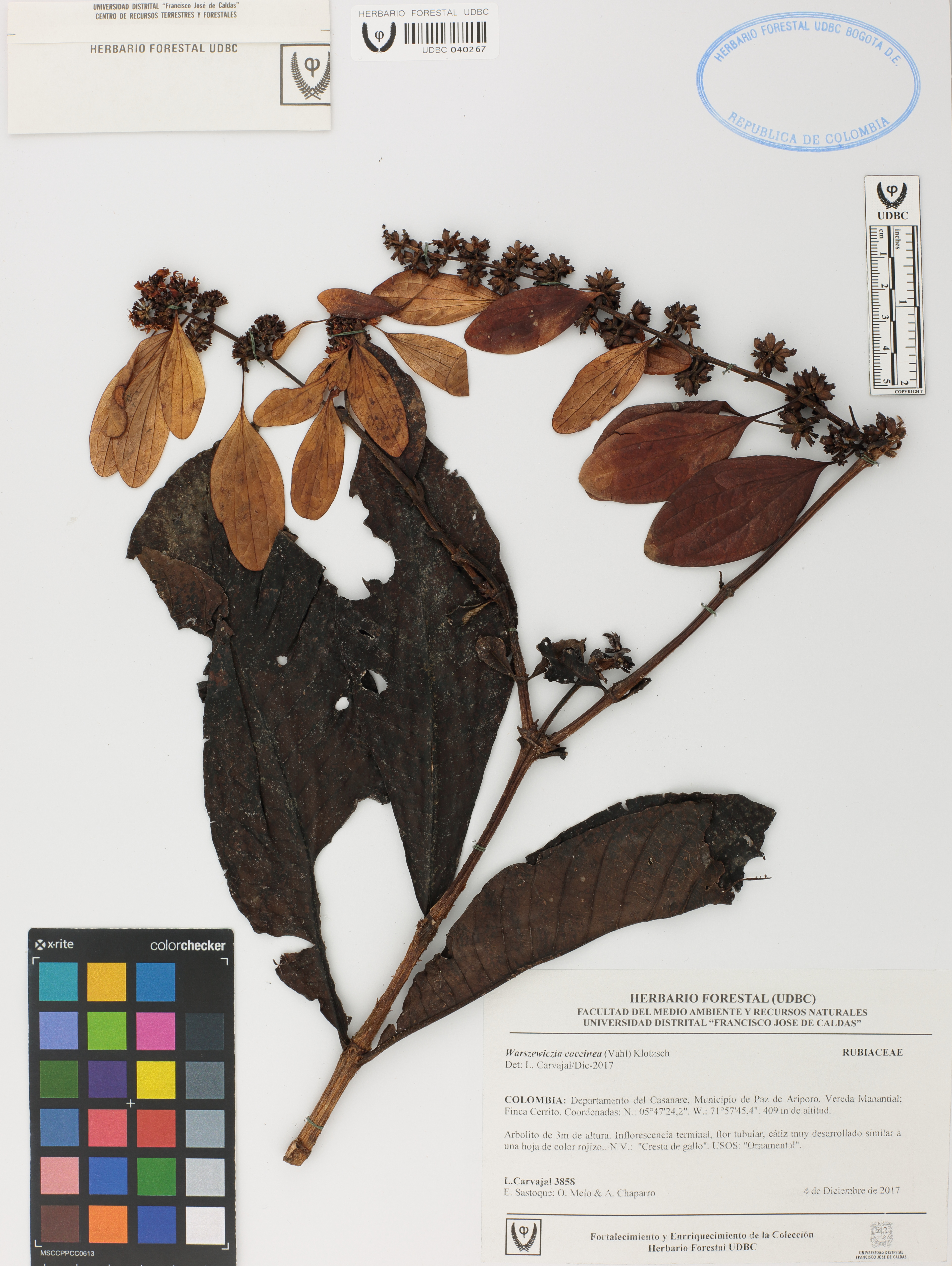 | dc.description | Fotografía del ejemplar Carvajal, L. 3858, determinado como Warszewiczia coccinea en el año 2017 | |