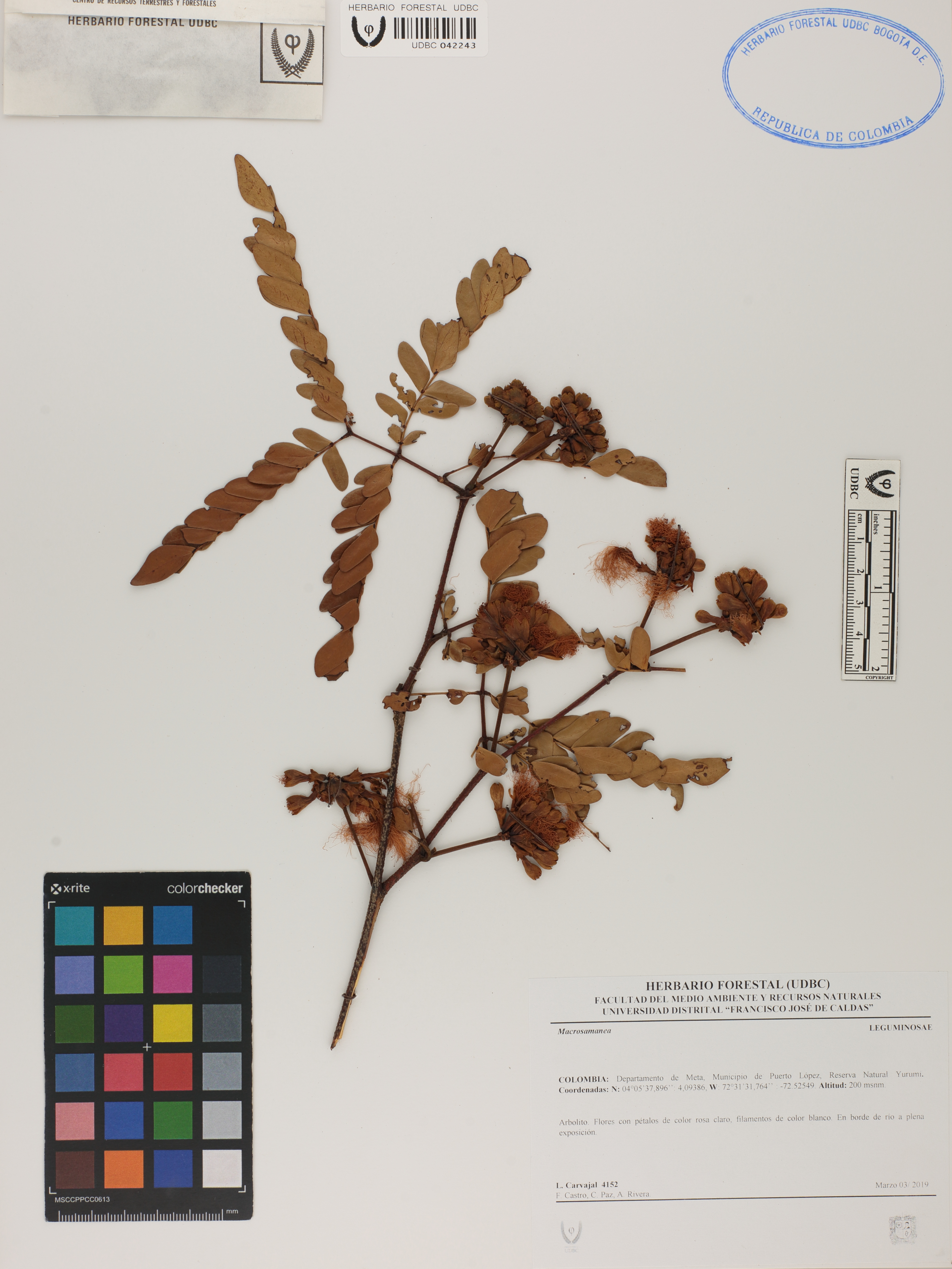 Fotografía del ejemplar Carvajal, L. 4152, determinado como Macrosamanea sp.