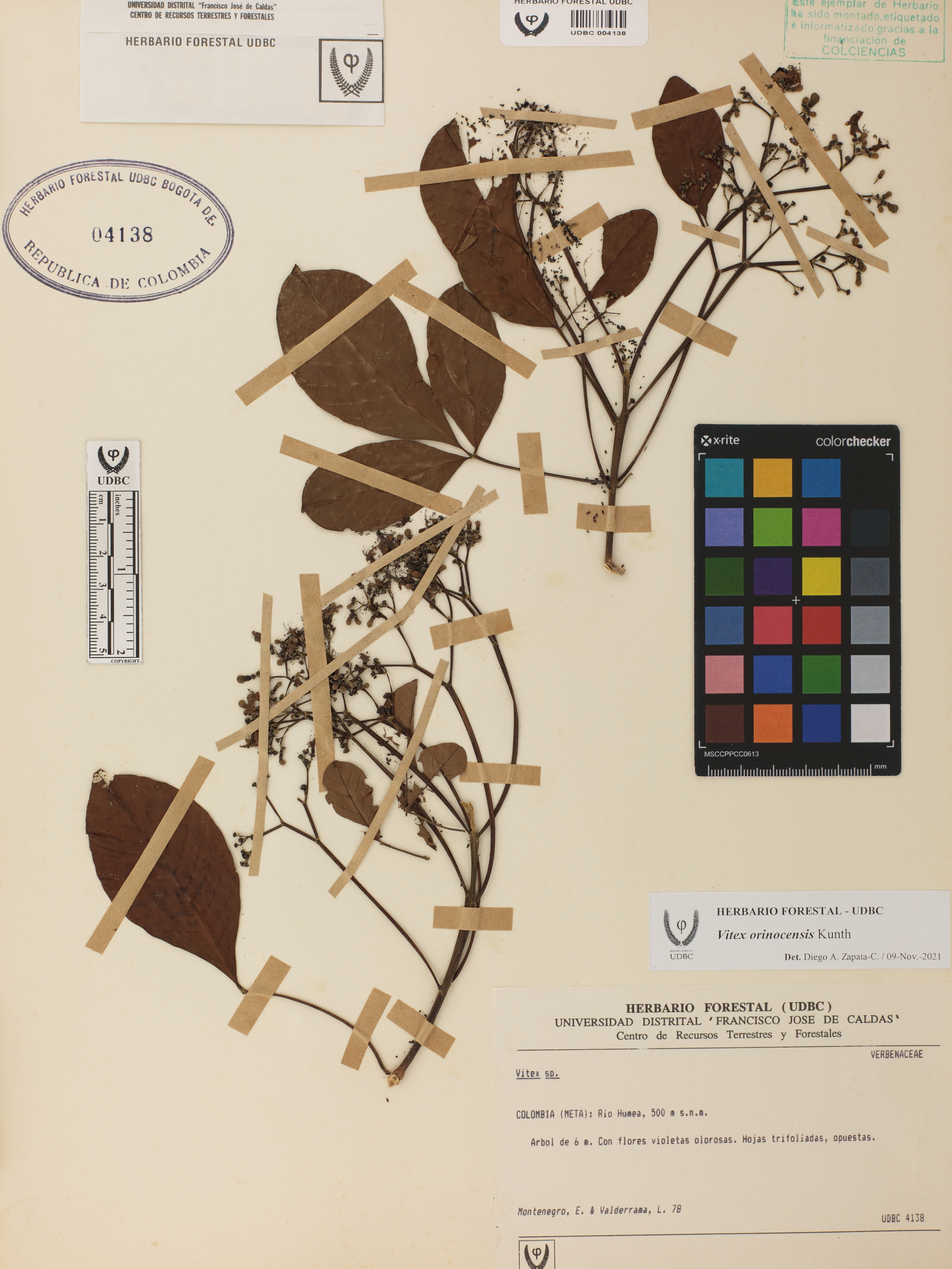 Fotografía del ejemplar Montenegro, E. 78, determinado como Vitex orinocensis en el año 2021