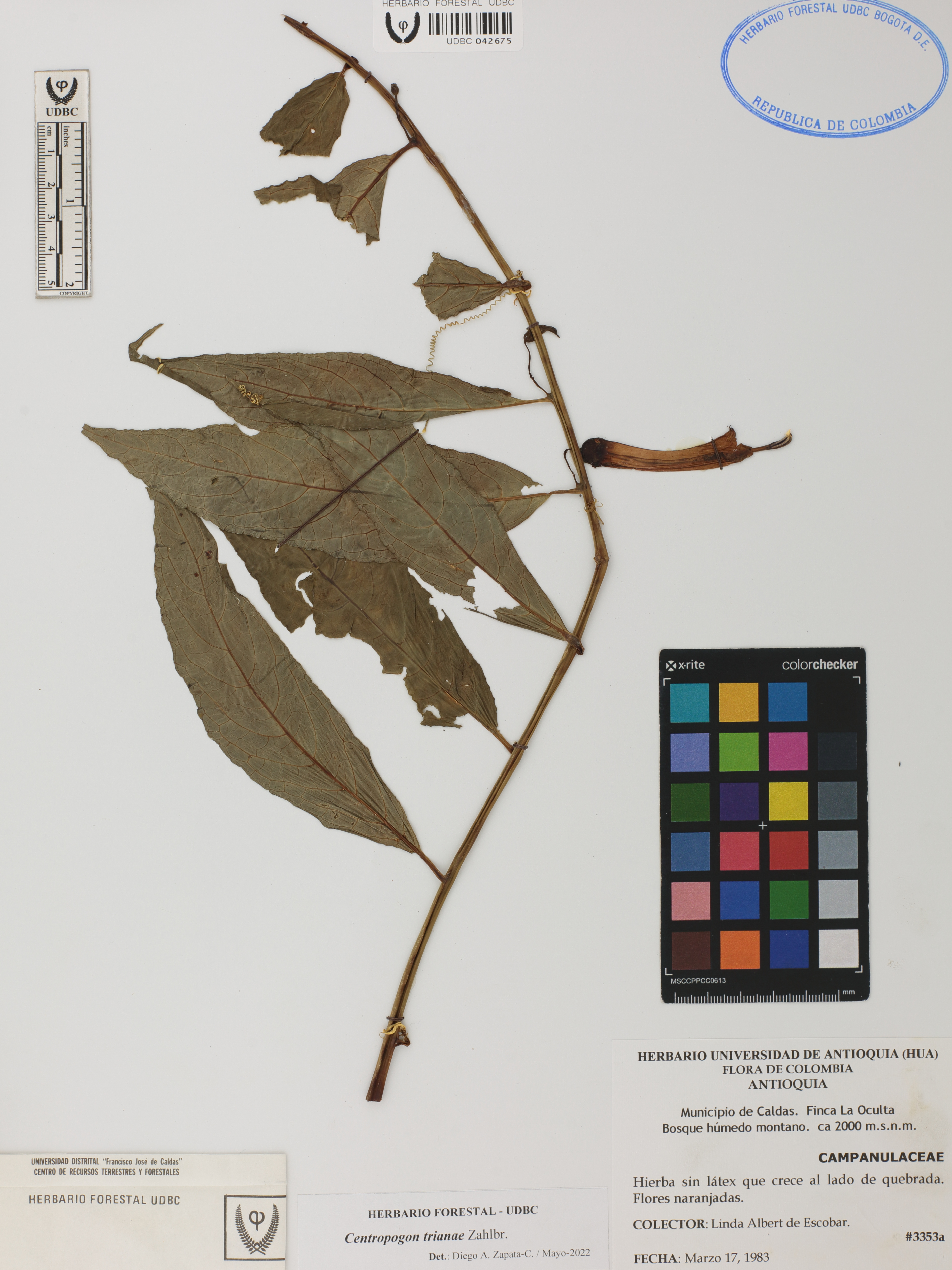 | dc.description | Fotografía del ejemplar Albert de Escobar, L. 3353, determinado como Centropogon trianae en el año 2022 | |