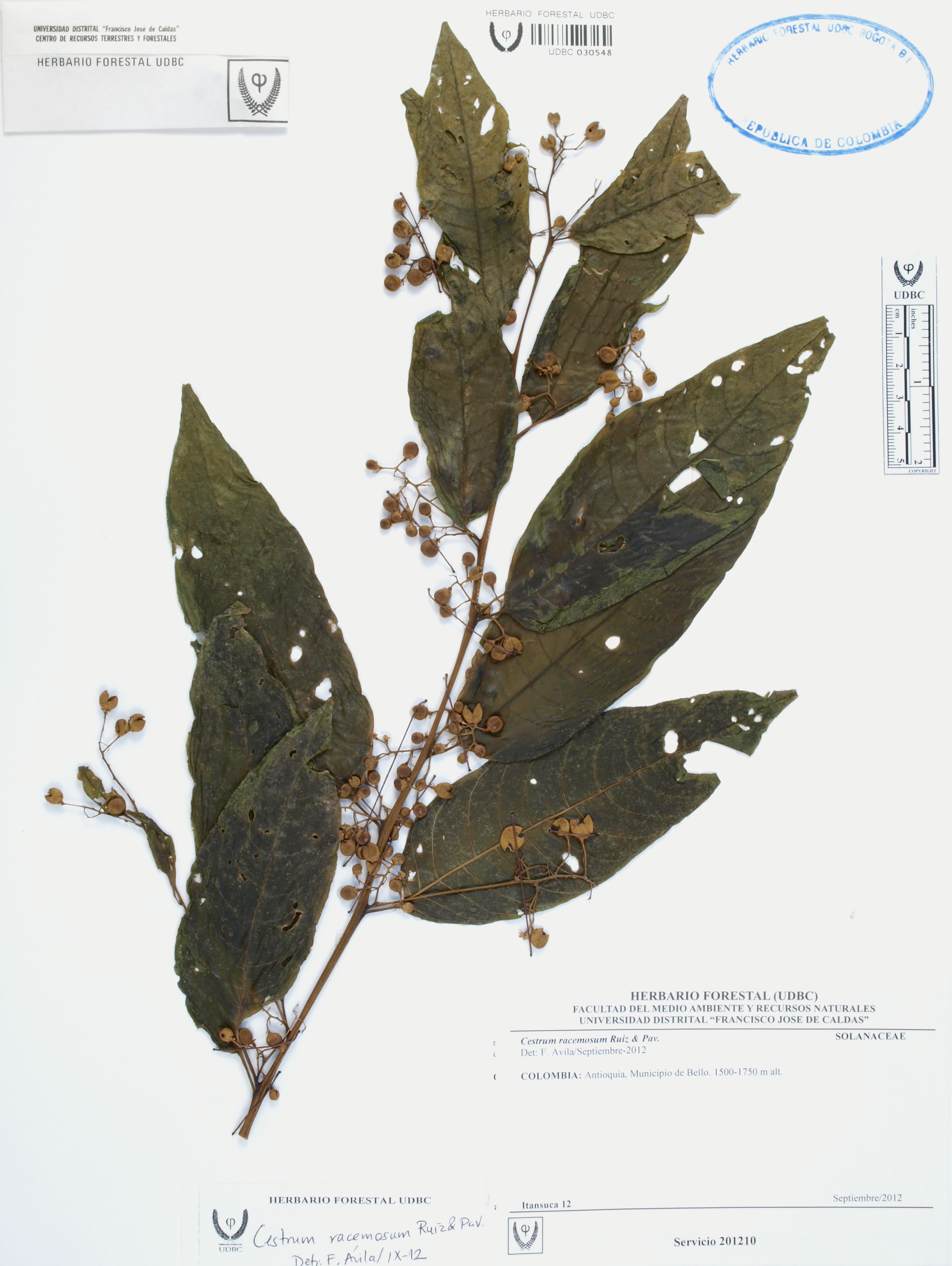 Fotografía del ejemplar SD 12, determinado como Cestrum racemosum en el año 2012