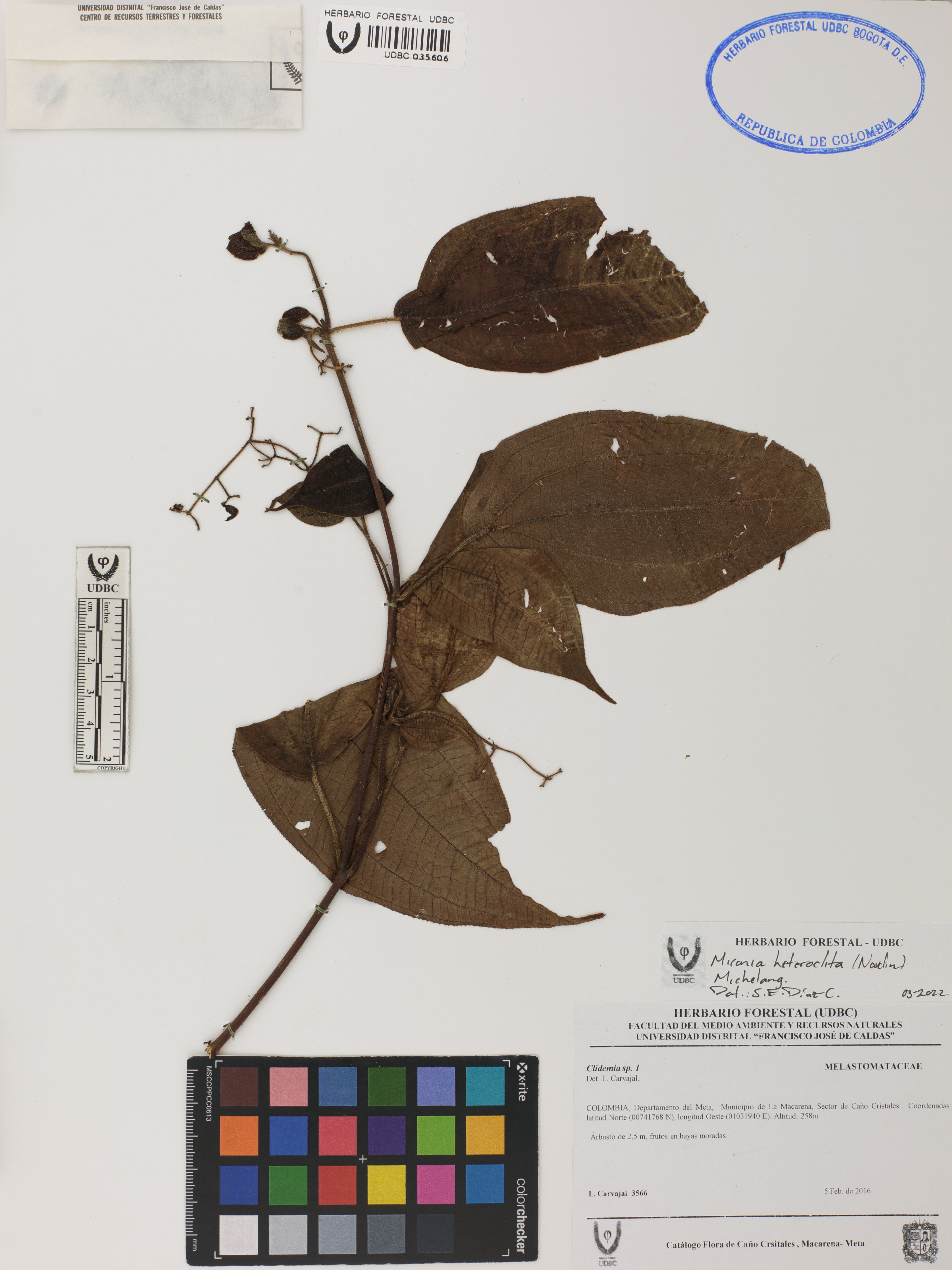 | dc.description | Fotografía del ejemplar Carvajal, L. 3566, determinado como Miconia heteroclita en el año 2022 | |