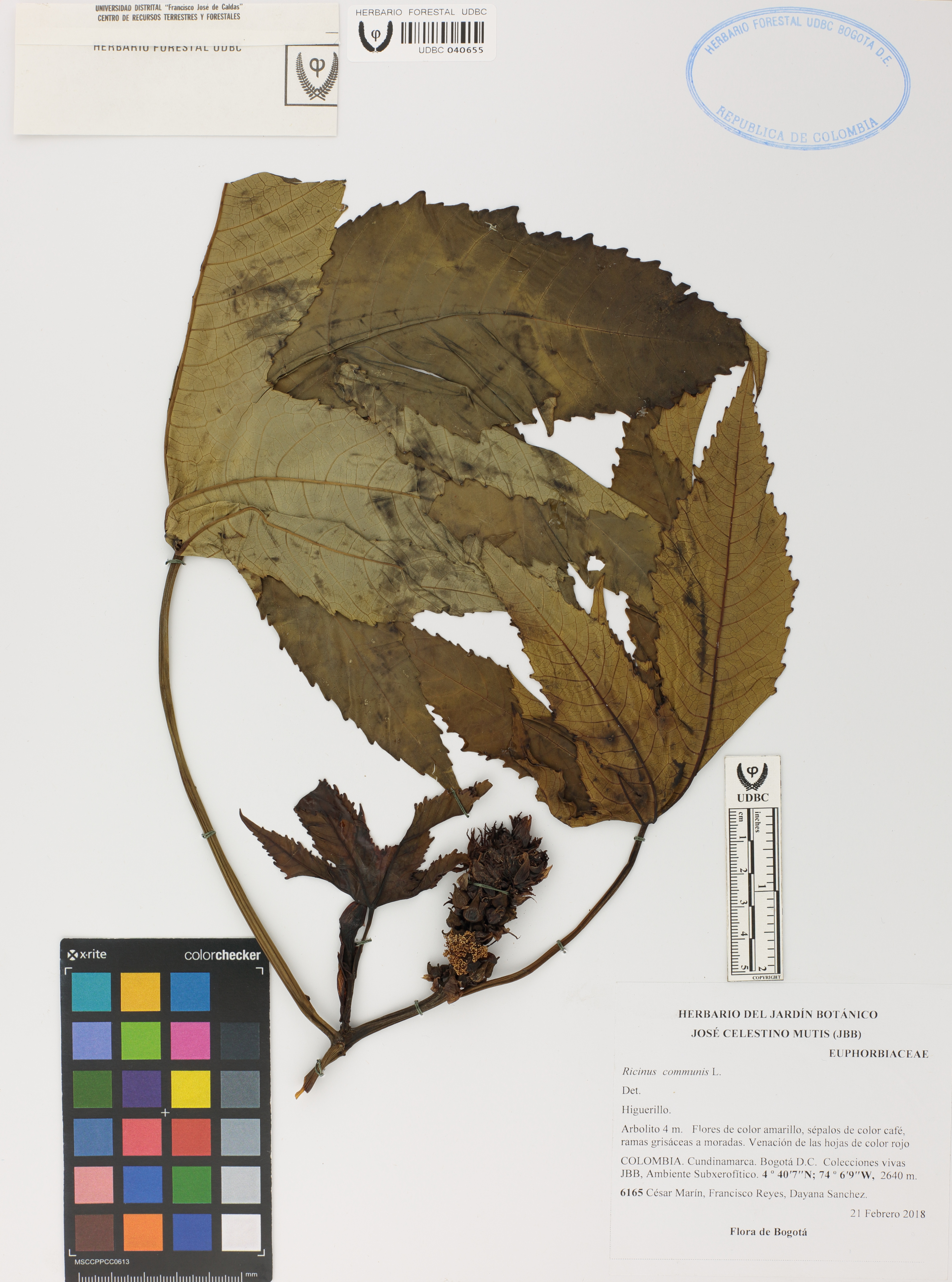 | dc.description | Fotografía del ejemplar Marín, C. 6165, determinado como Ricinus communis | |