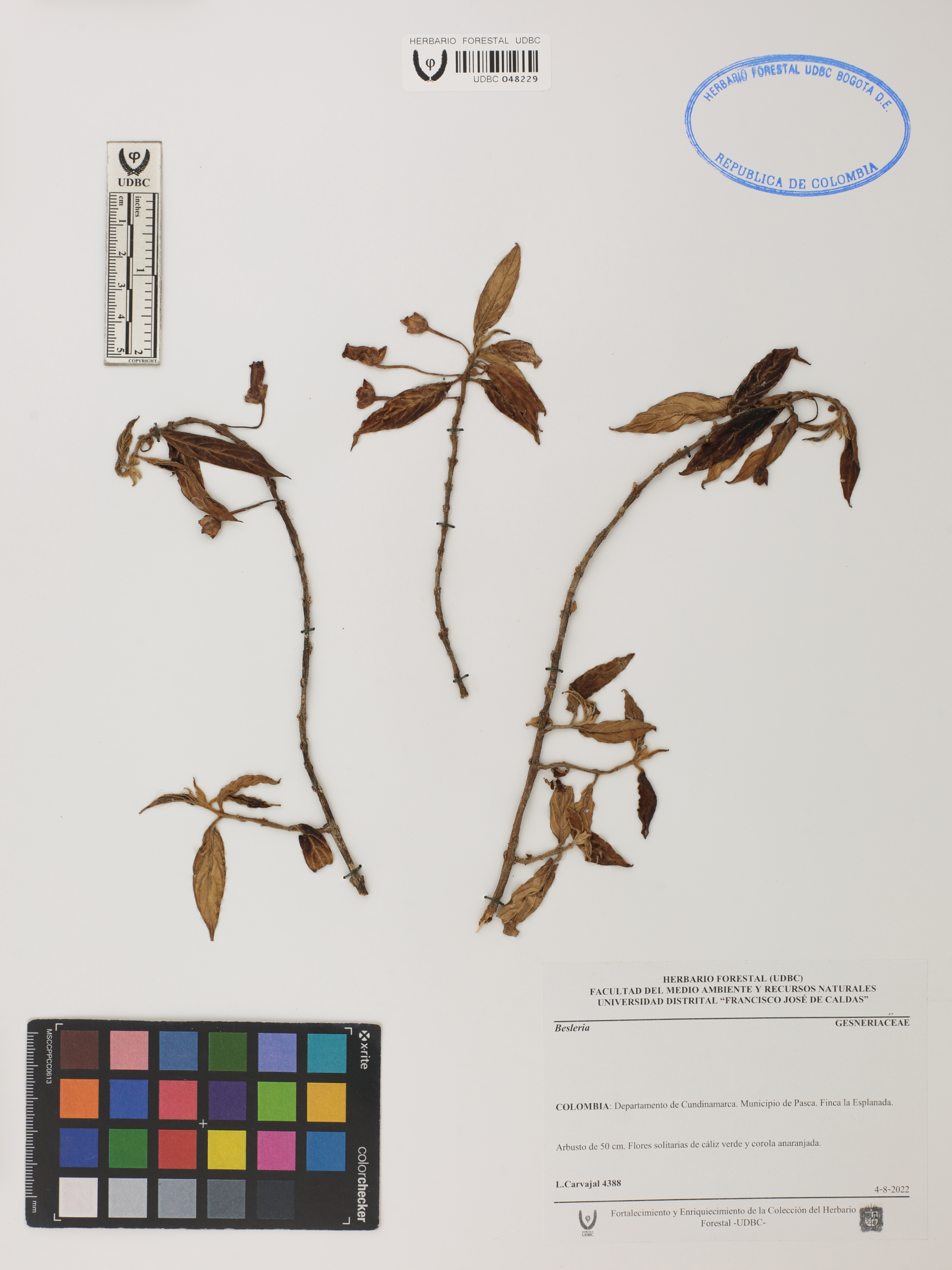 Fotografía del ejemplar Carvajal, L. 4388, determinado como Besleria sp.