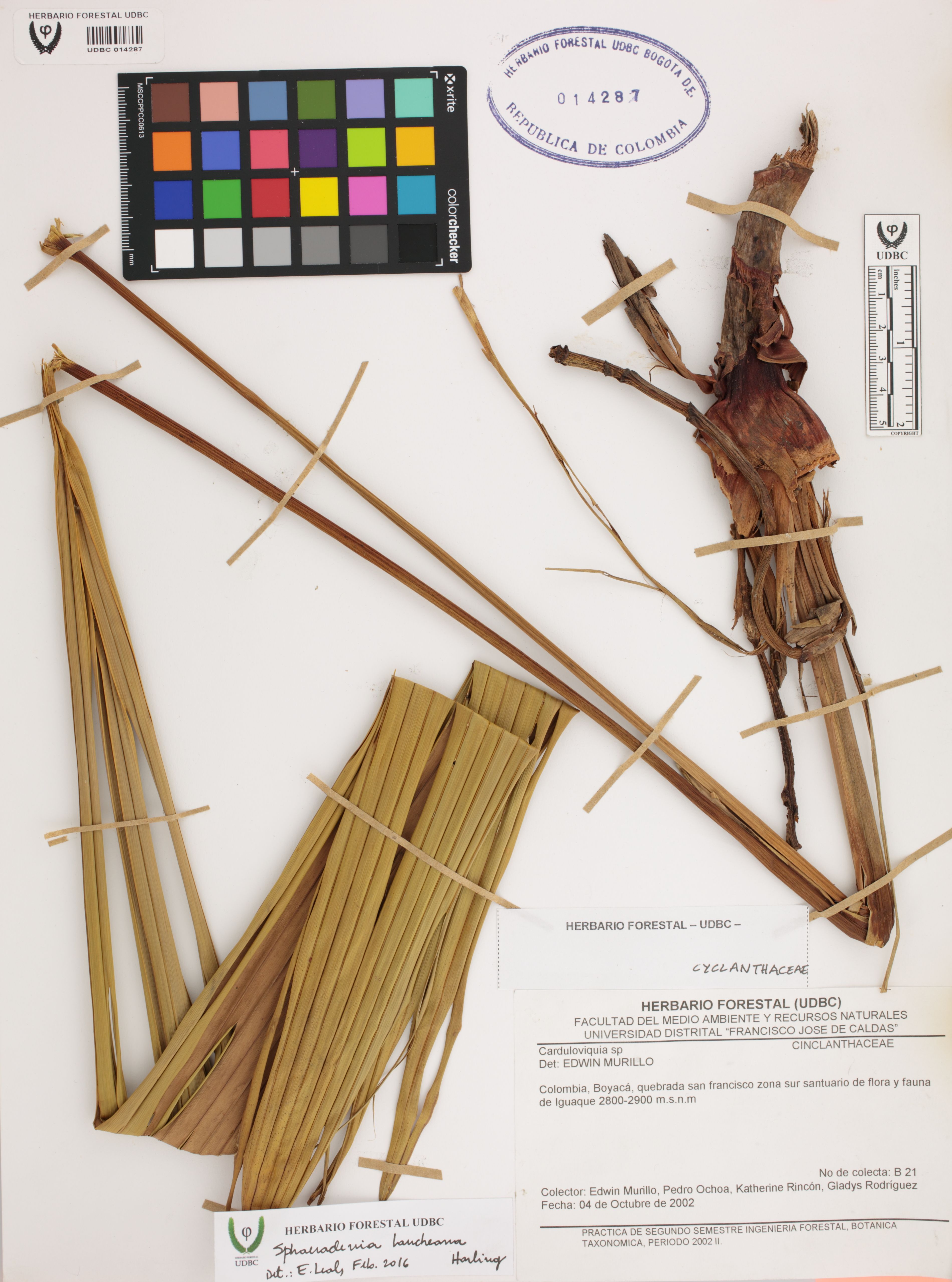 Fotografía del ejemplar Murillo, E. 21, determinado como Sphaeradenia laucheana en el año 2016