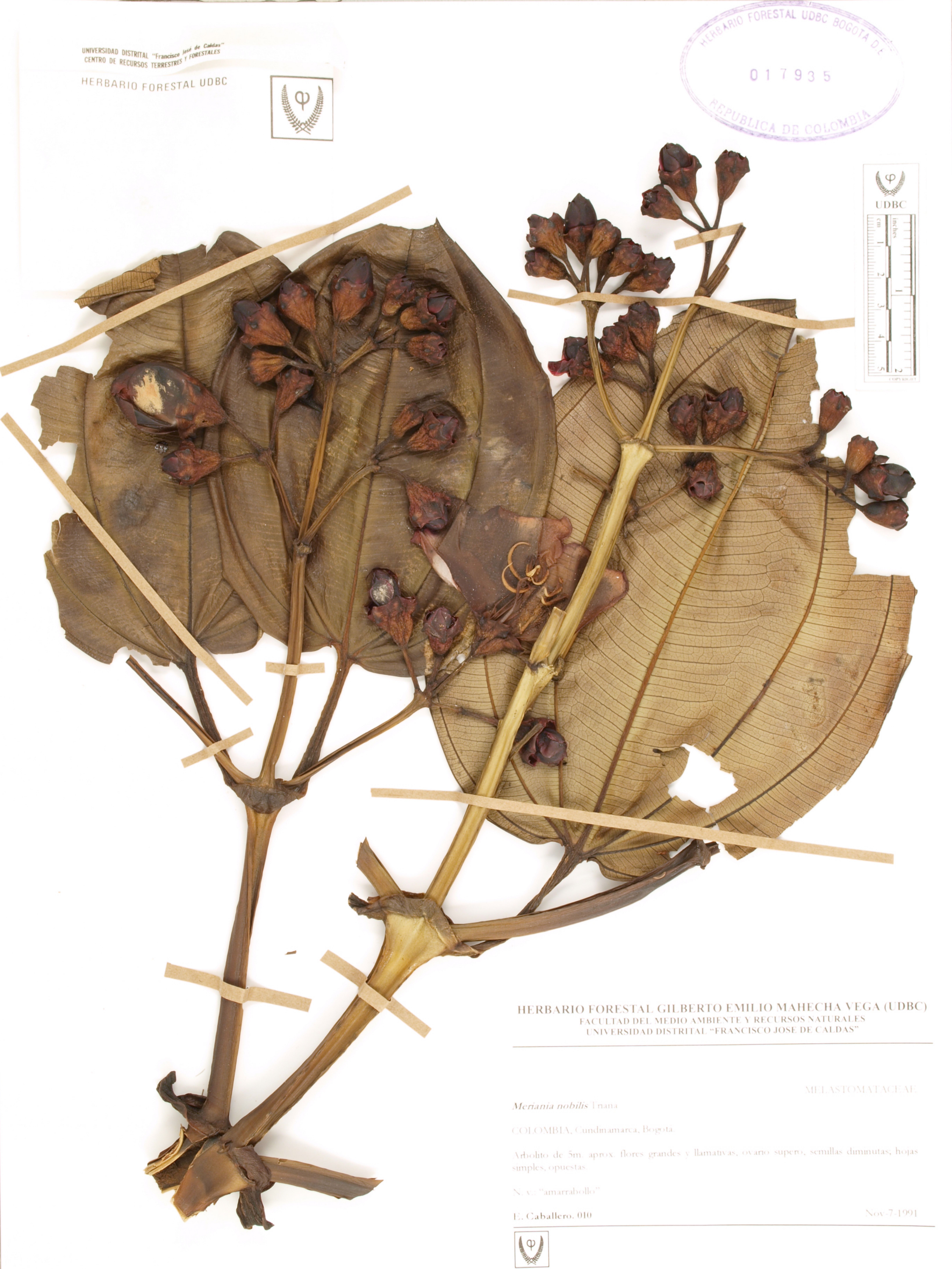 Fotografía del ejemplar Caballero, E. 10, determinado como Meriania nobilis