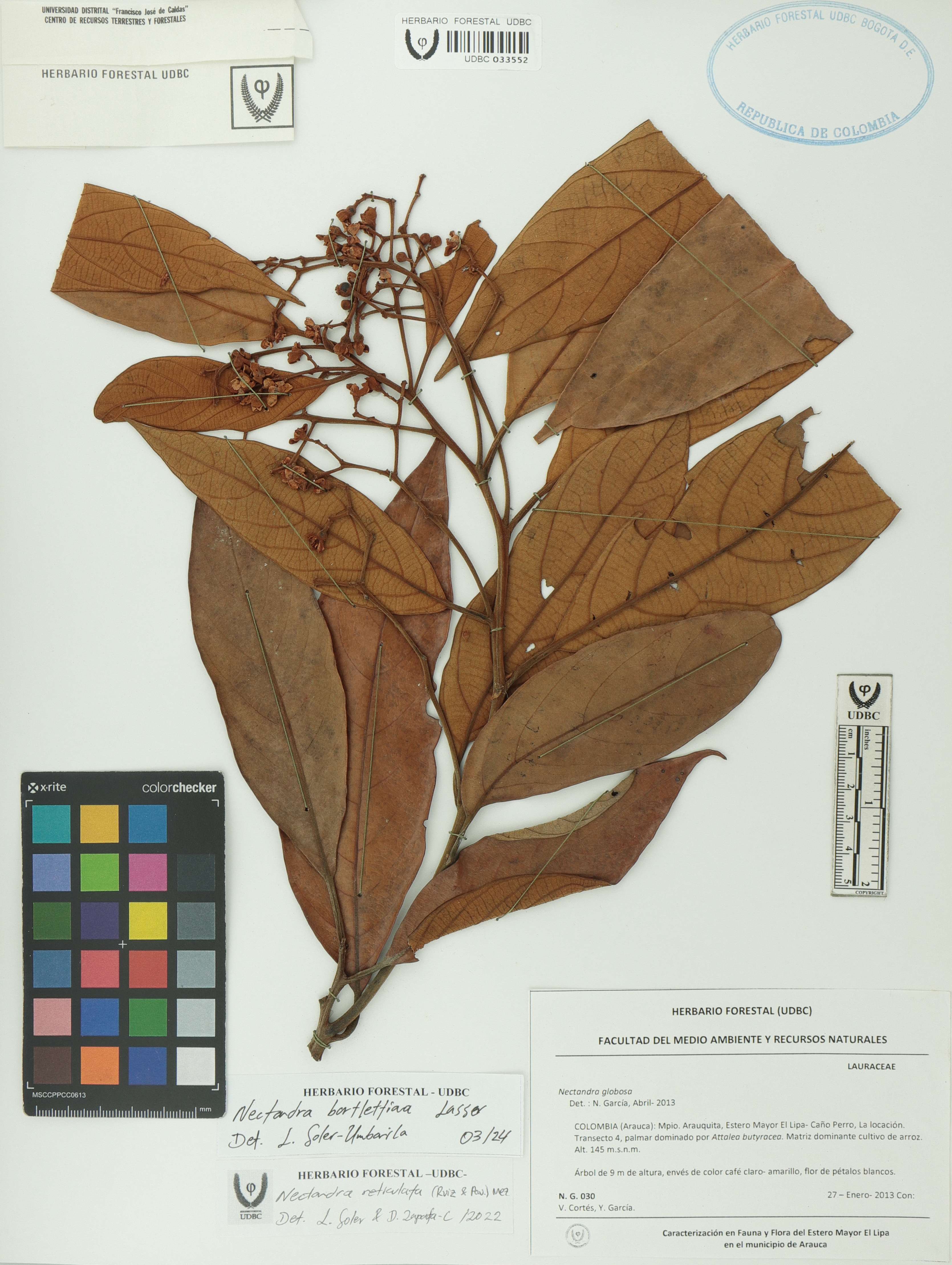 Fotografía del ejemplar García, N. 30, determinado como Nectandra bartlettiana en el año 2024