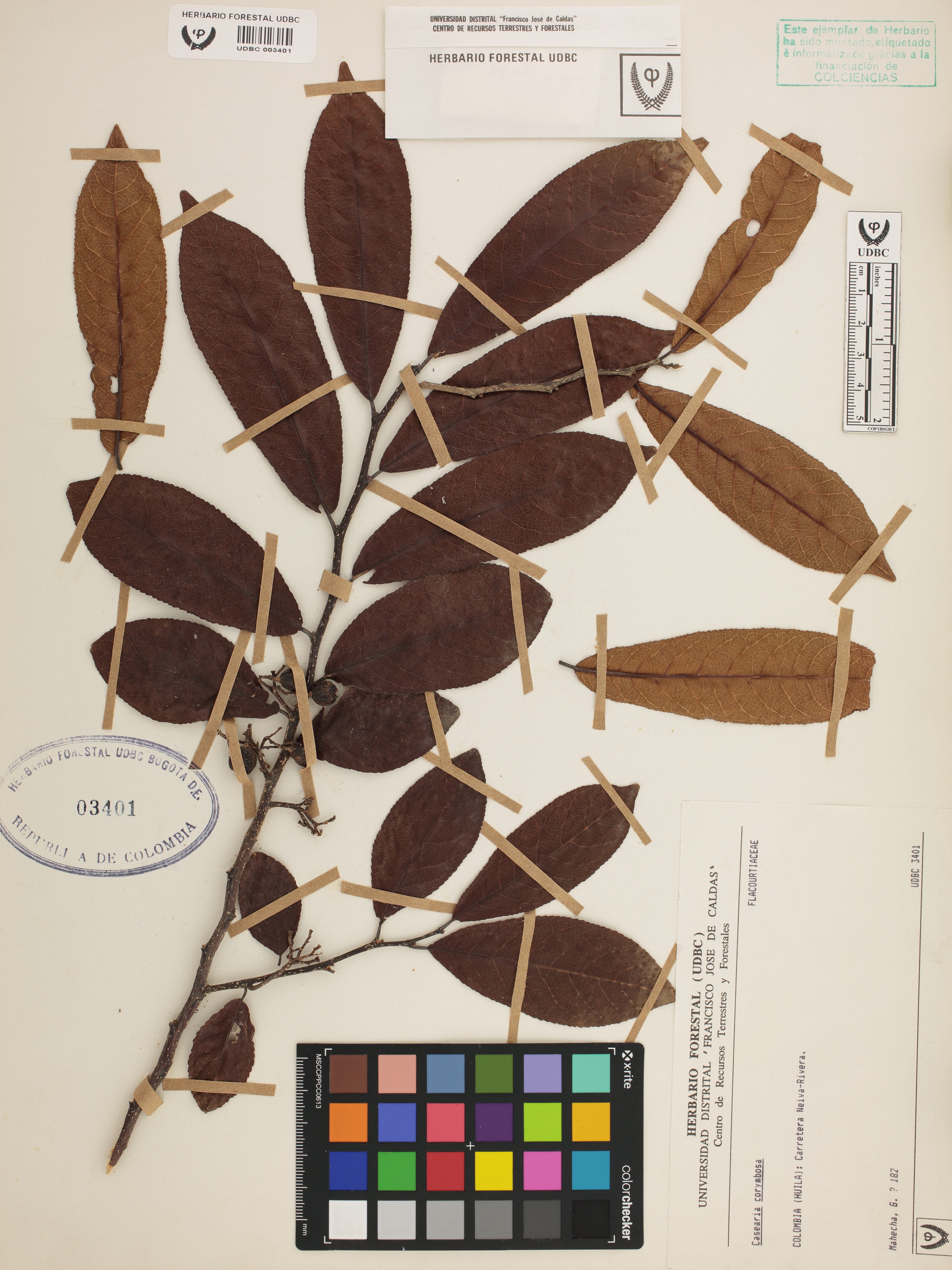 Fotografía del ejemplar Mahecha, G. 182, determinado como Casearia corymbosa