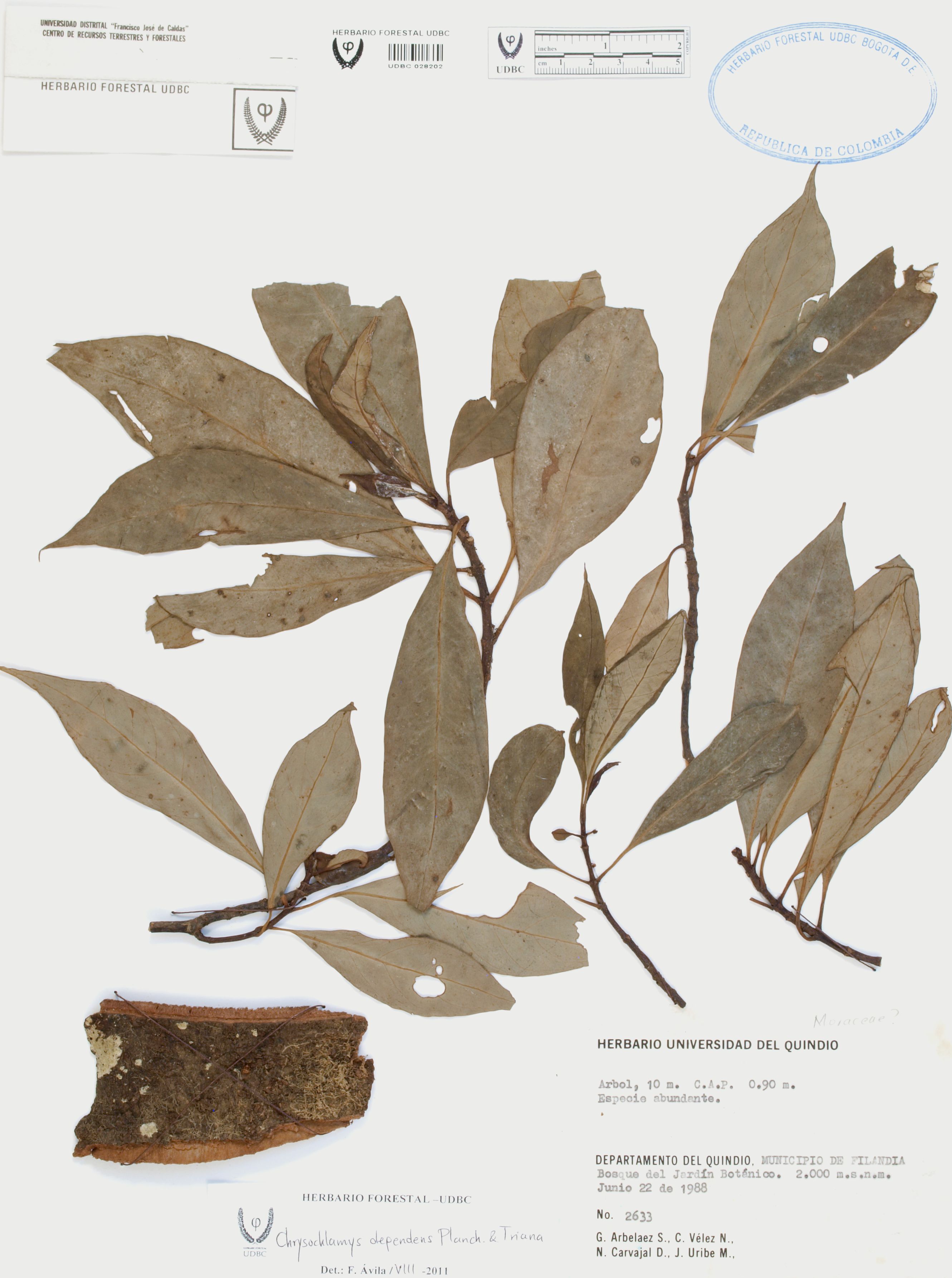 Fotografía del ejemplar Arbeláez, G. 2633, determinado como Chrysochlamys dependens en el año 2011