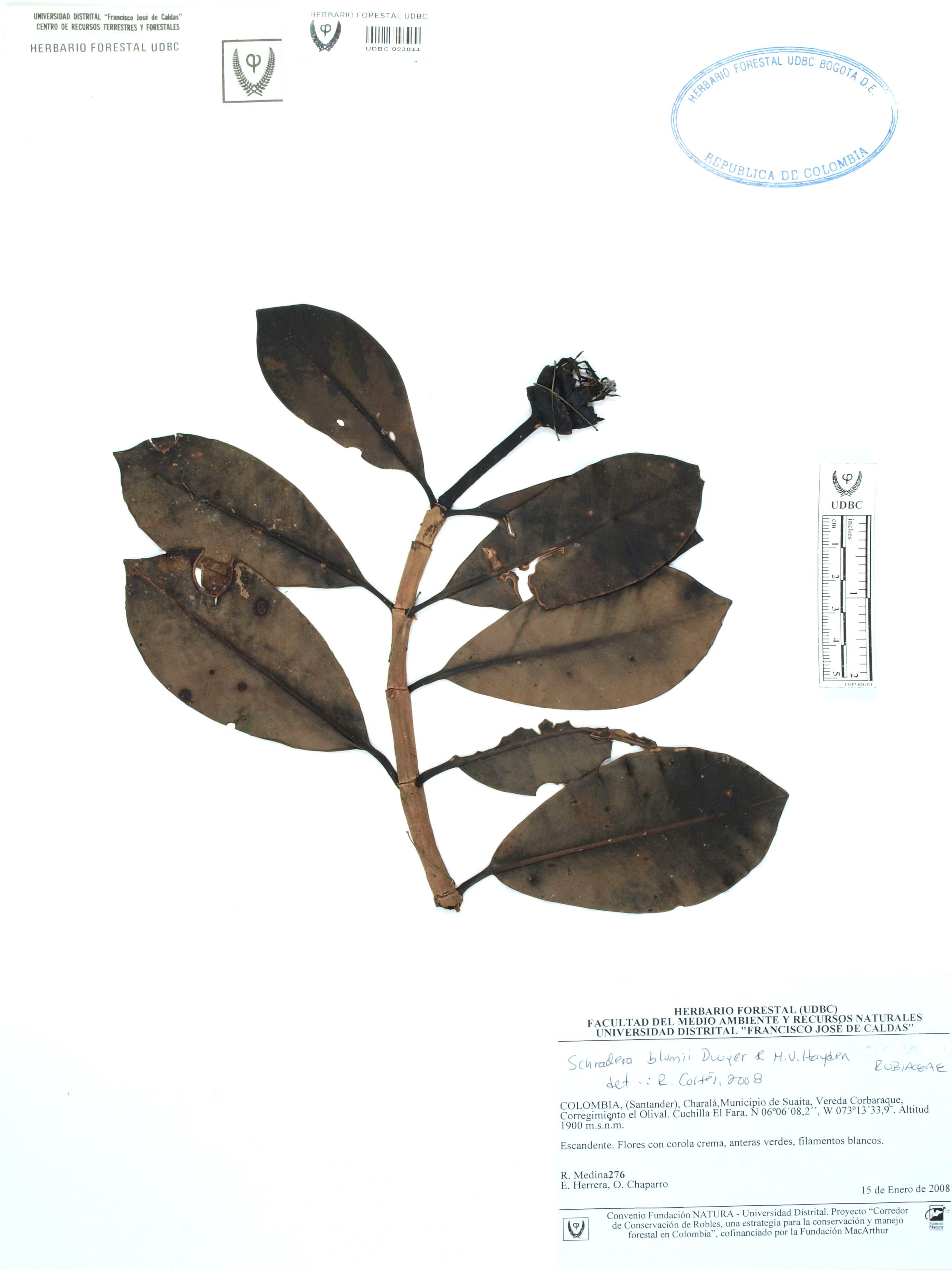 Fotografía del ejemplar Medina, R. 276, determinado como Schradera blumii en el año 2008