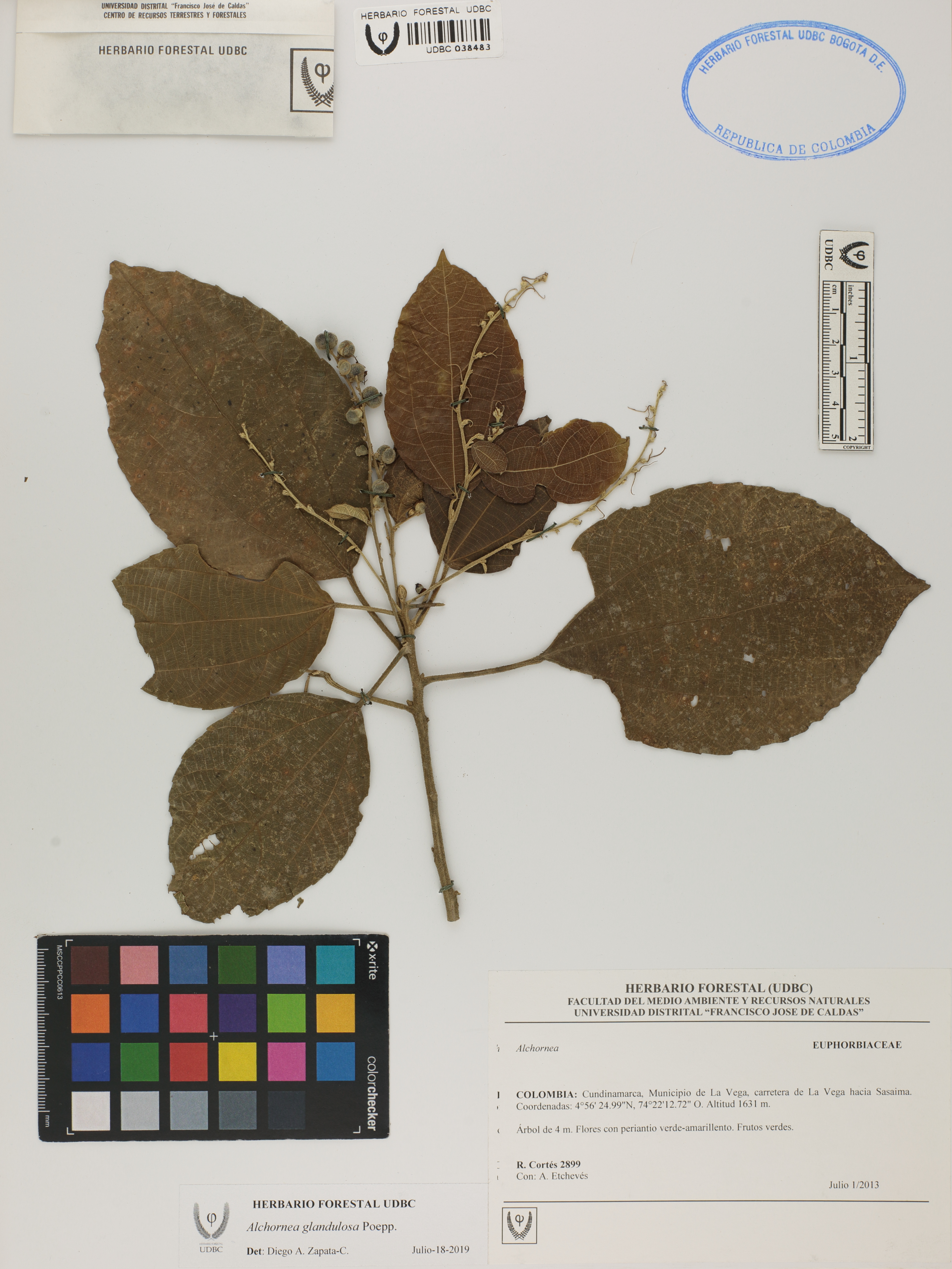 Fotografía del ejemplar Cortés, R. 2899, determinado como Alchornea glandulosa en el año 2019