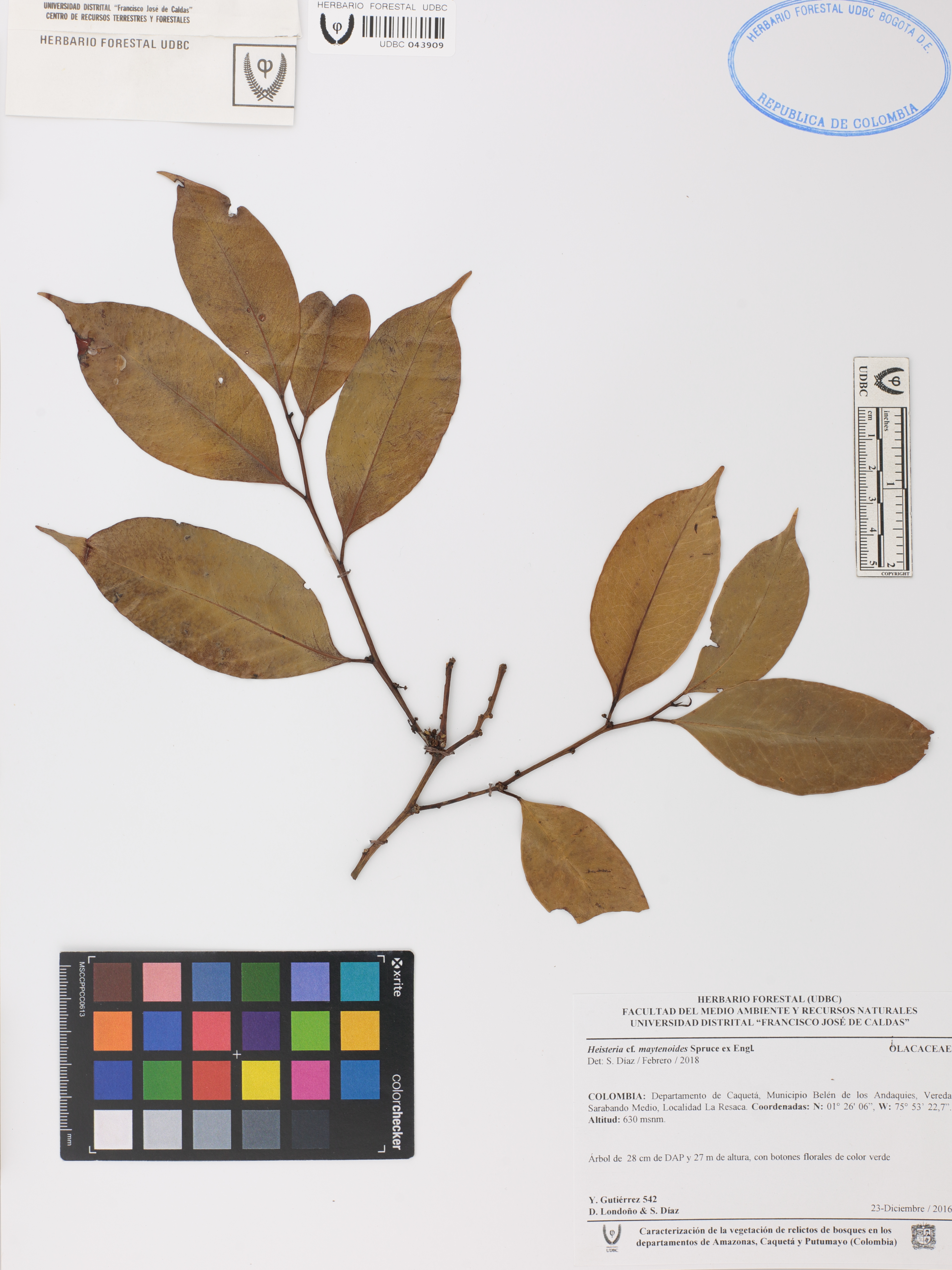 | dc.description | Fotografía del ejemplar Gutiérrez, Y. 542, determinado como Heisteria maytenoides en el año 2018 | |