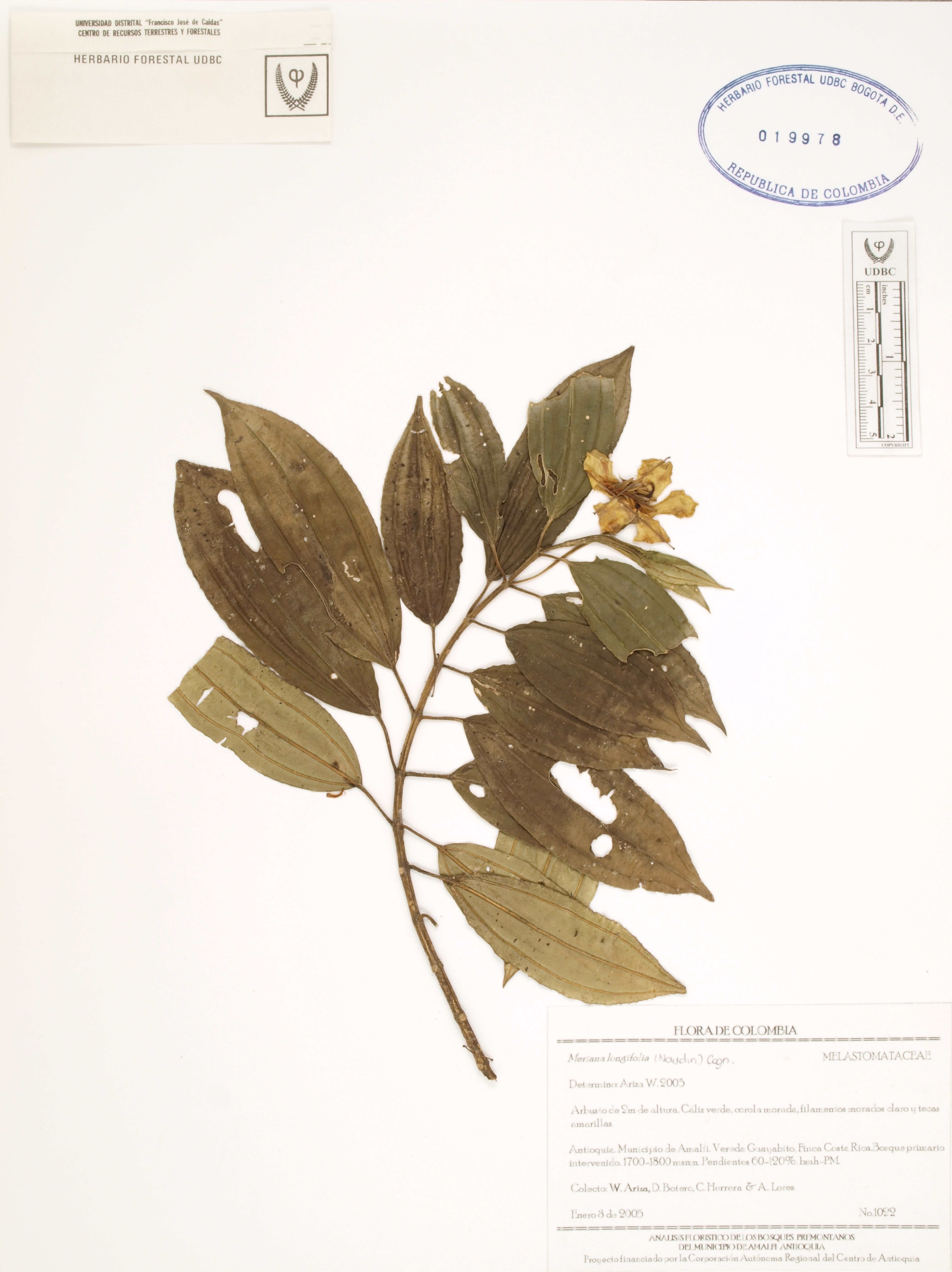 | dc.description | Fotografía del ejemplar Ariza, W. 1022, determinado como Meriania longifolia en el año 2006 | |