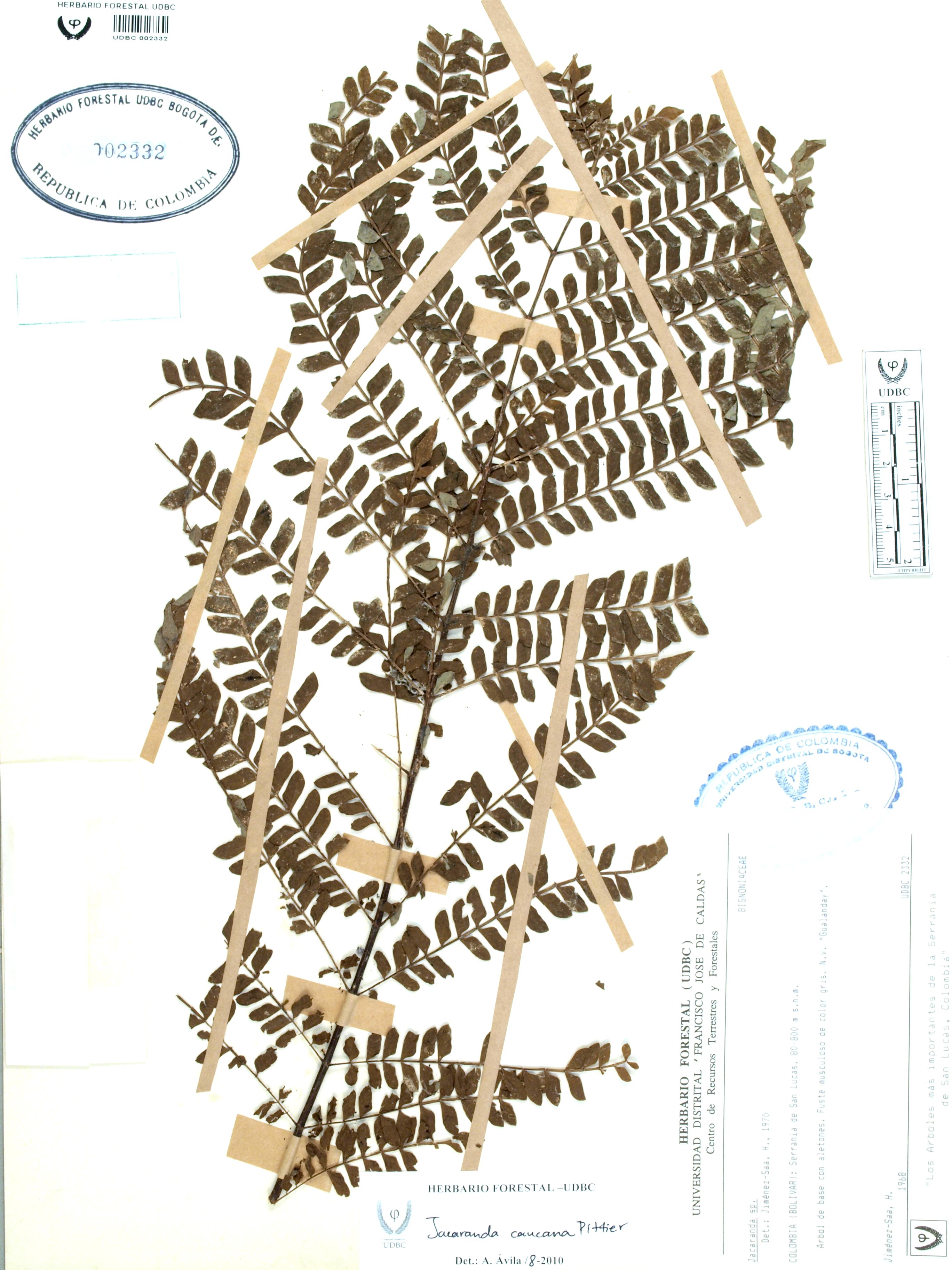 Fotografía del ejemplar Jiménez-Saa, H., determinado como Jacaranda caucana en el año 2010