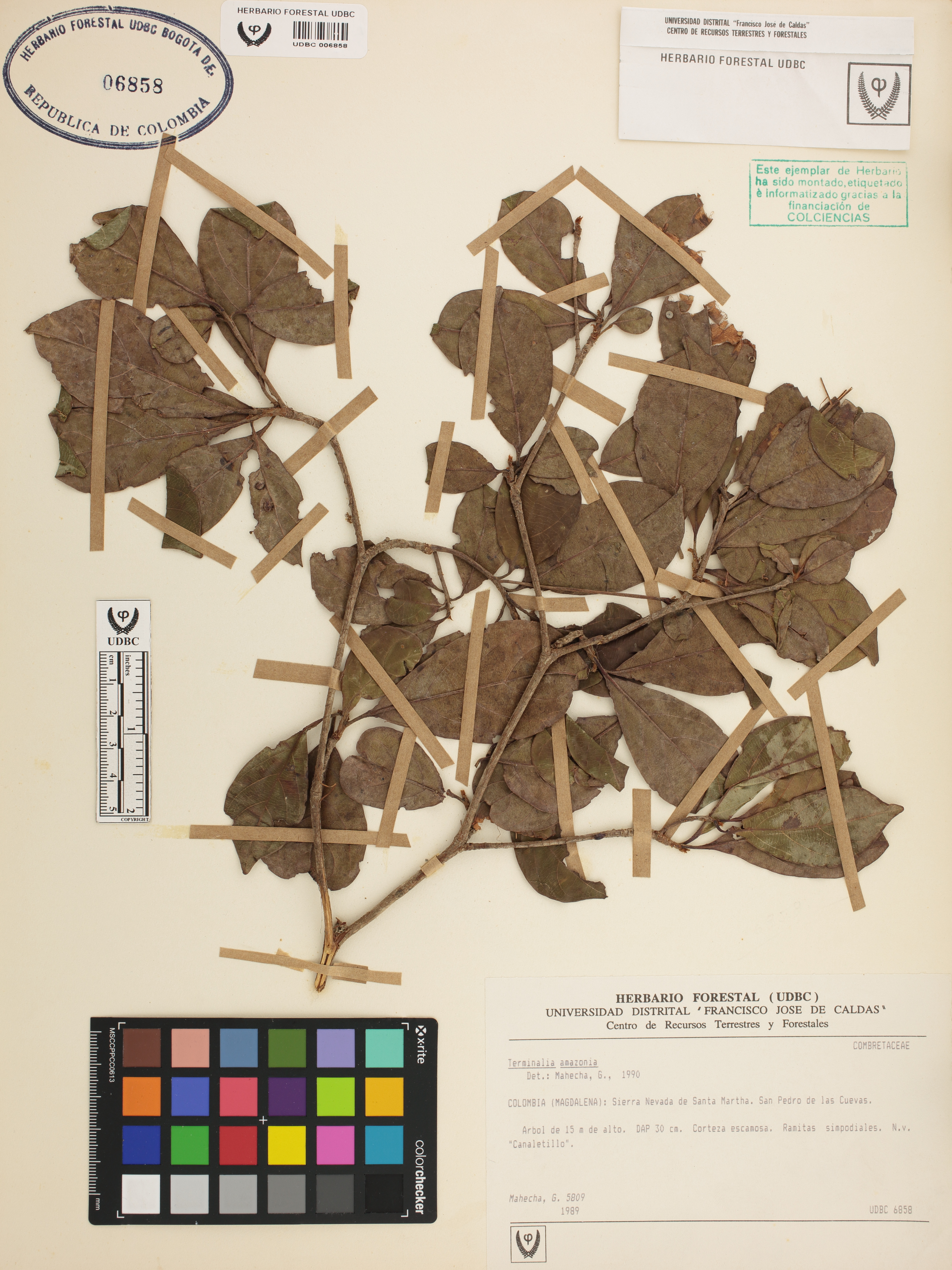 Fotografía del ejemplar Mahecha, G. 5809, determinado como Terminalia amazonia en el año 1990