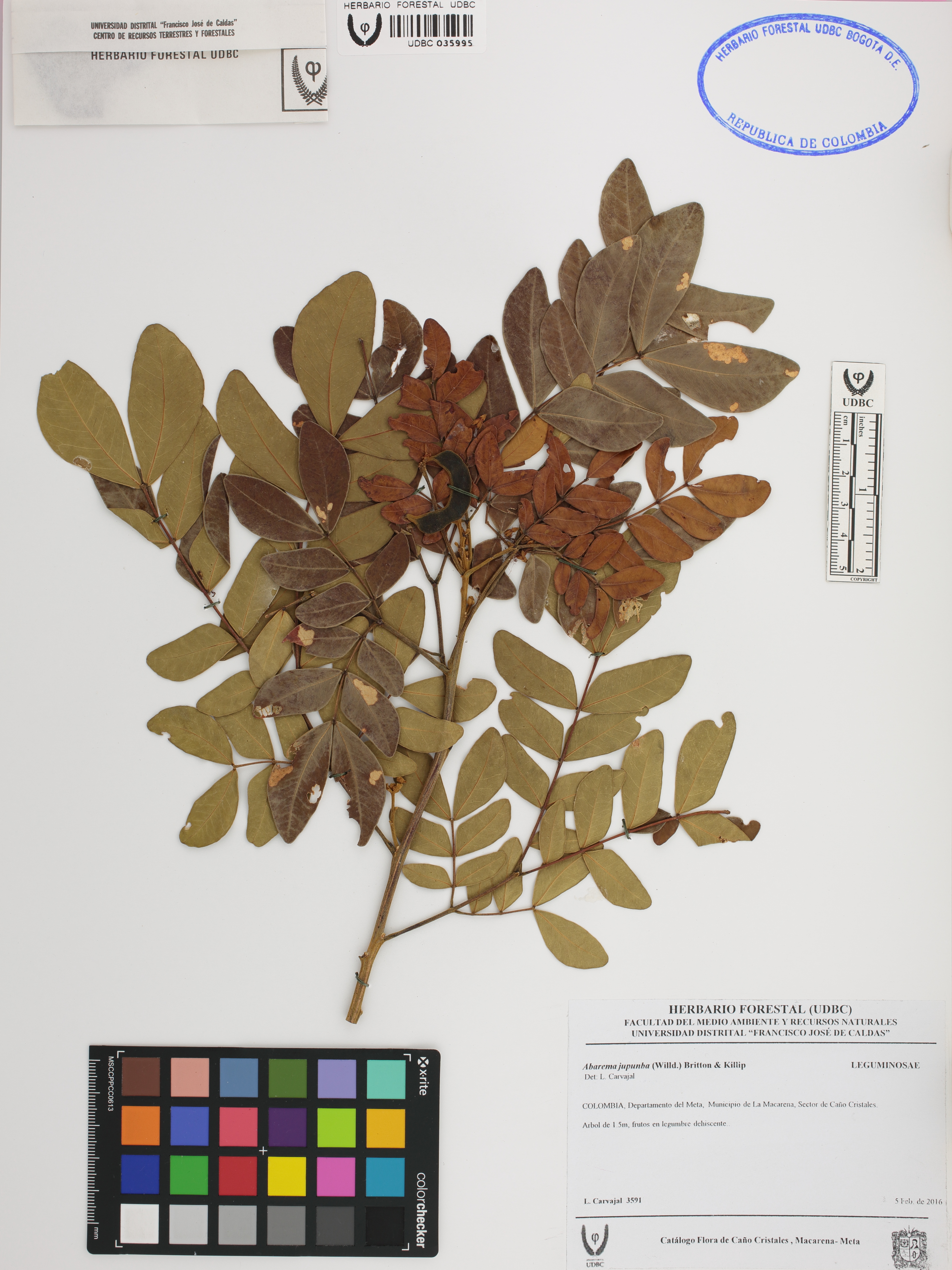 Fotografía del ejemplar Carvajal, L. 3591, determinado como Abarema jupunba