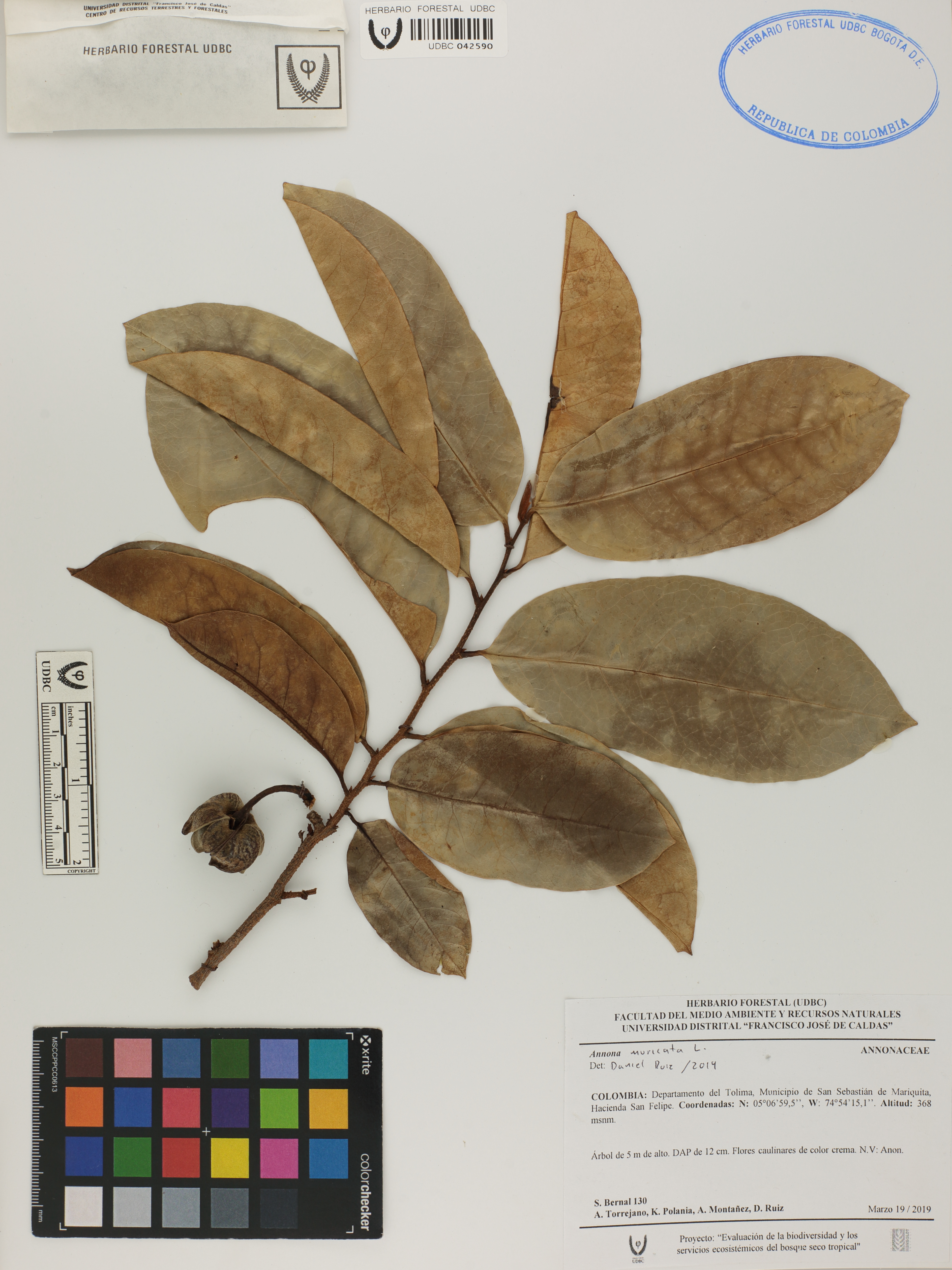 Fotografía del ejemplar Bernal, S. 130, determinado como Annona muricata en el año 2019