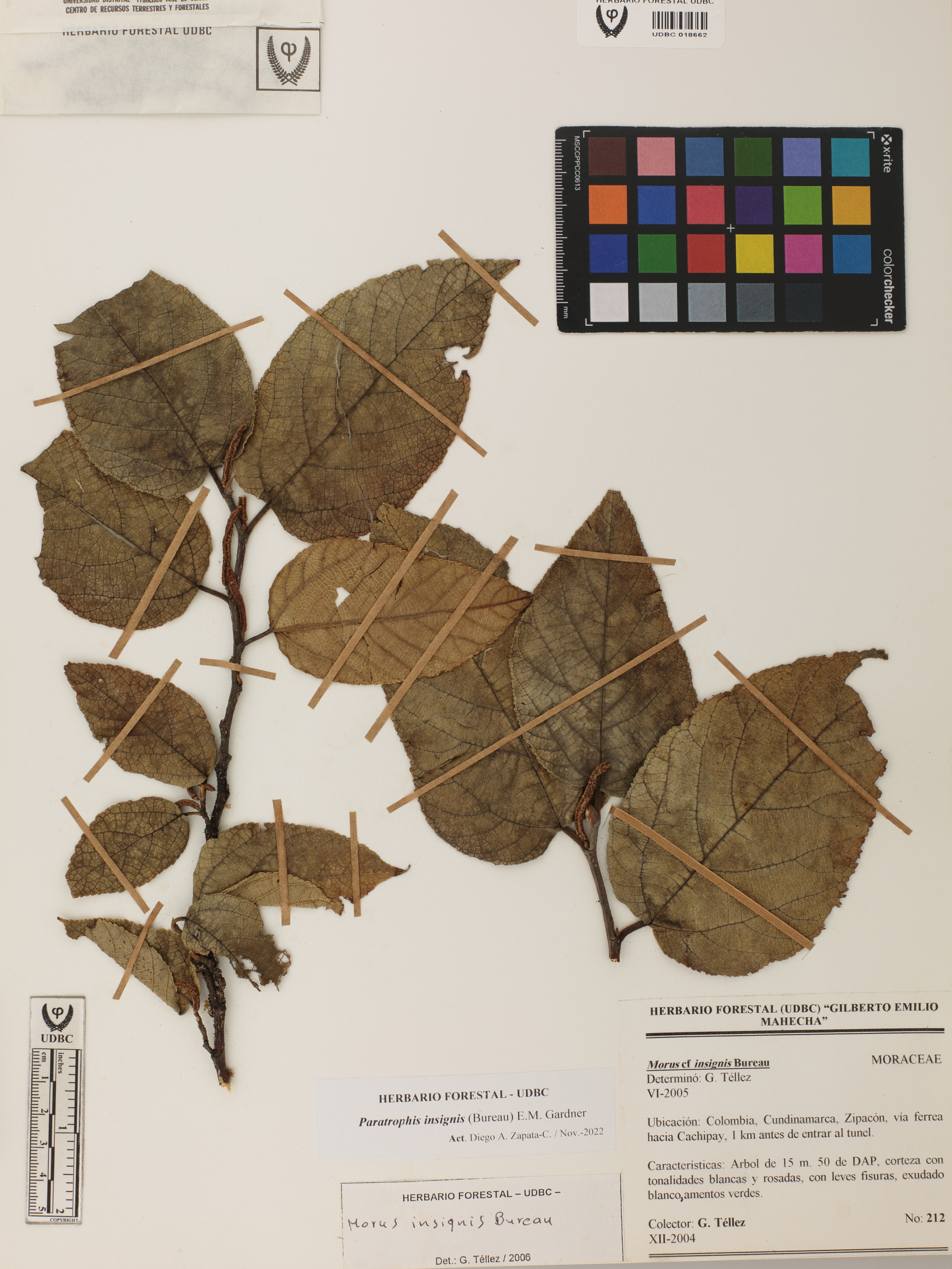 Fotografía del ejemplar Téllez, G. 212, determinado como Paratrophis insignis en el año 2006