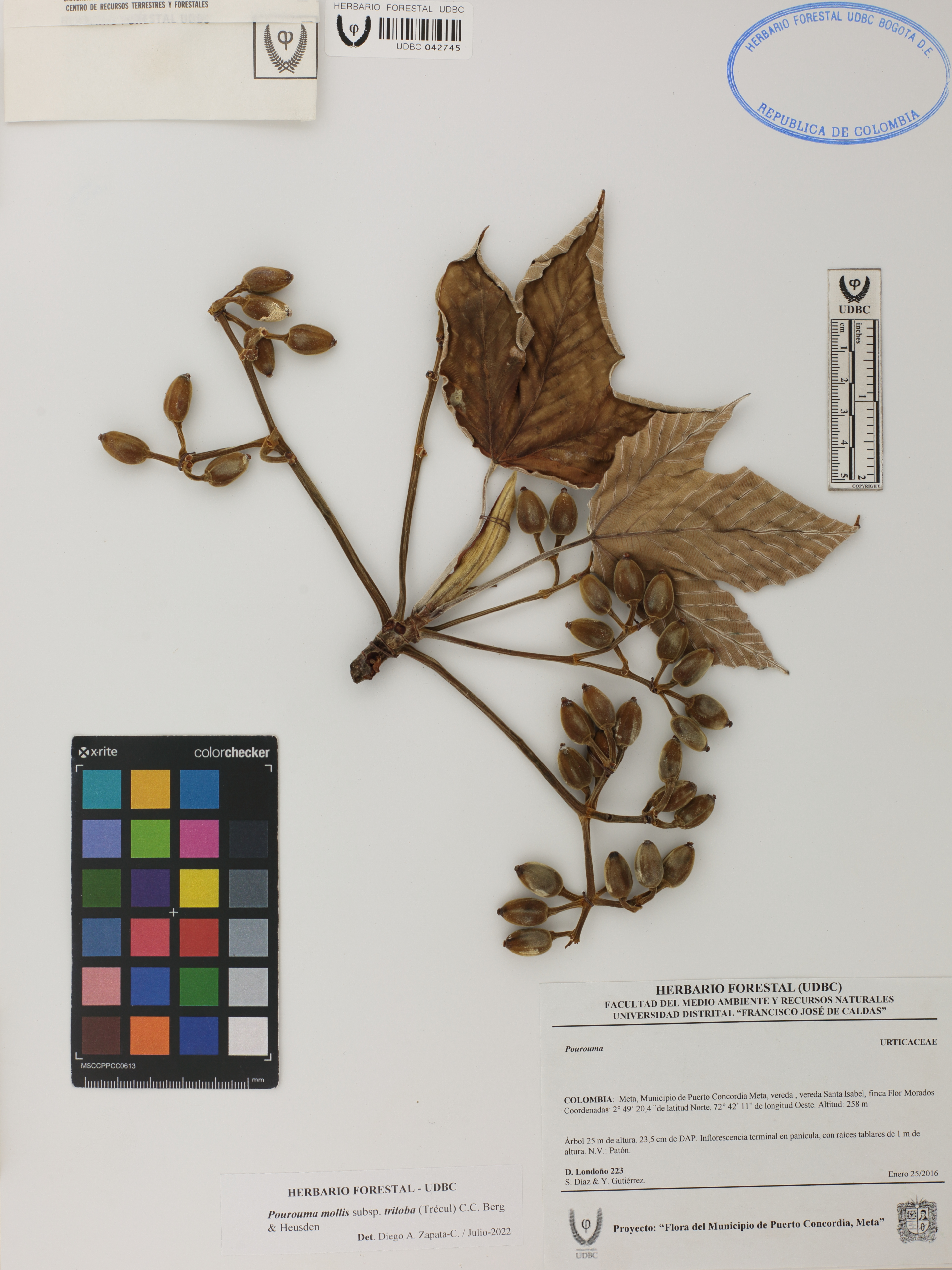 | dc.description | Fotografía del ejemplar Londoño, D. 223, determinado como Pourouma mollis subsp. triloba en el año 2022 | |