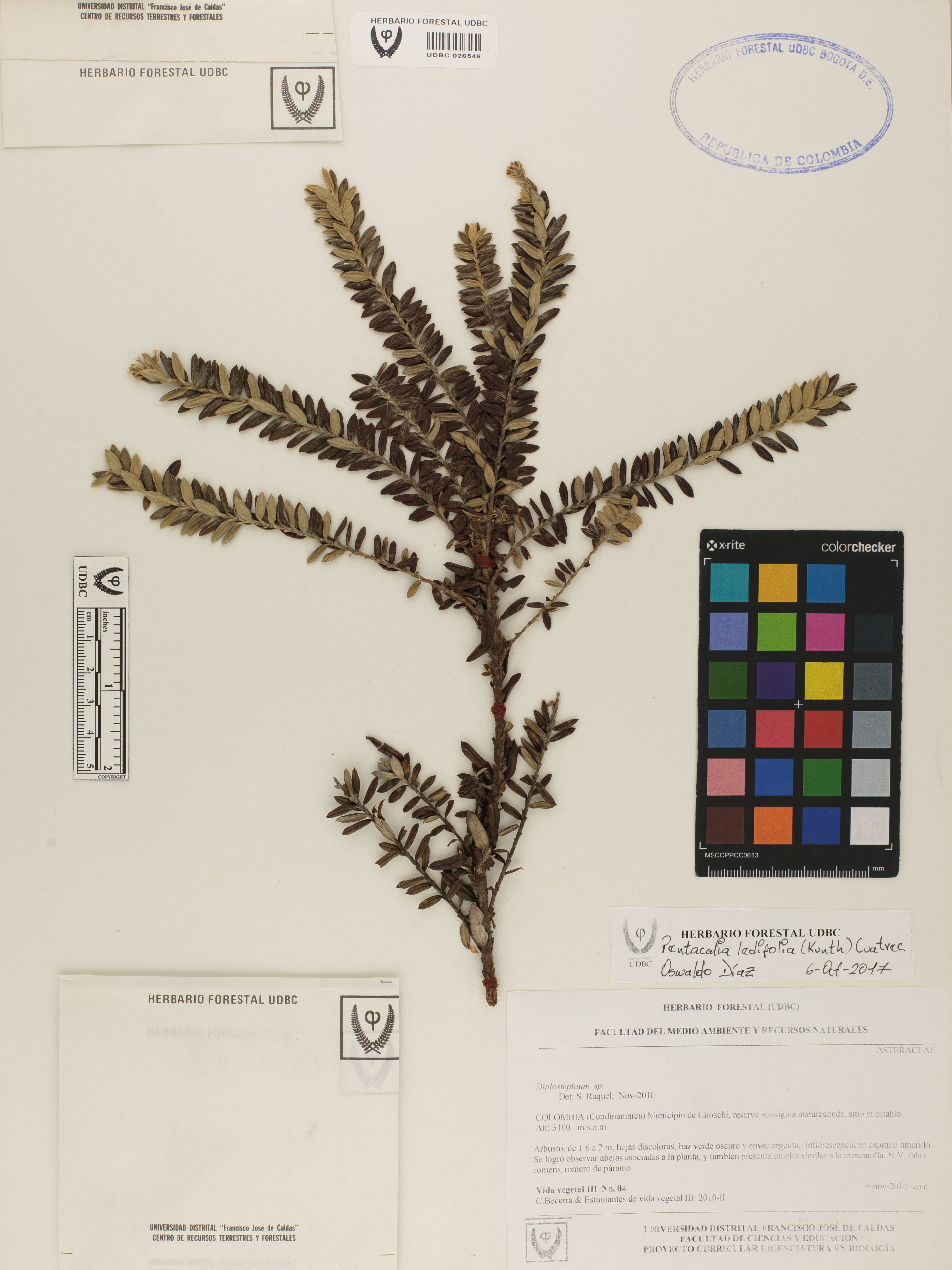 Fotografía del ejemplar Becerra, C. 4, determinado como Pentacalia ledifolia en el año 2017