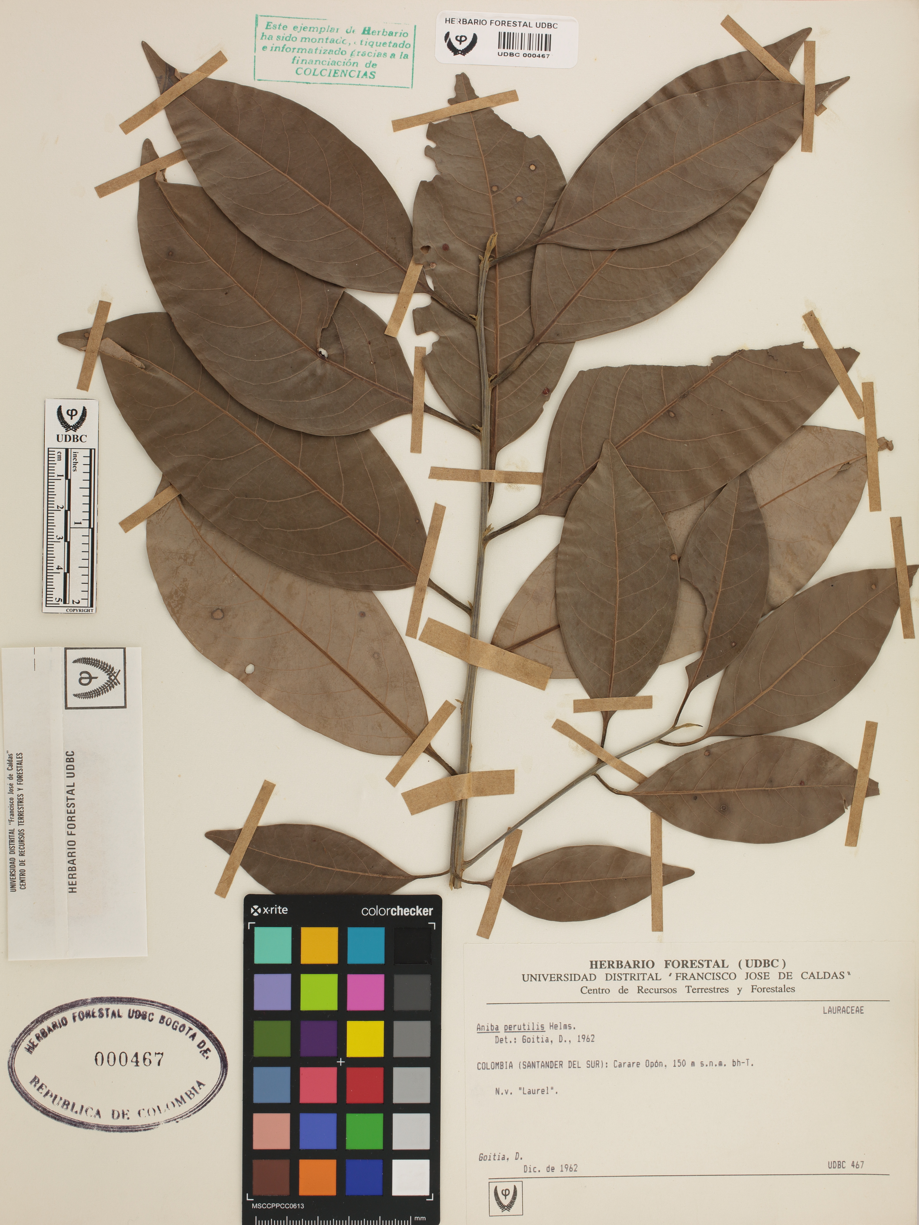 Fotografía del ejemplar Goitia, D., determinado como Aniba perutilis en el año 1962