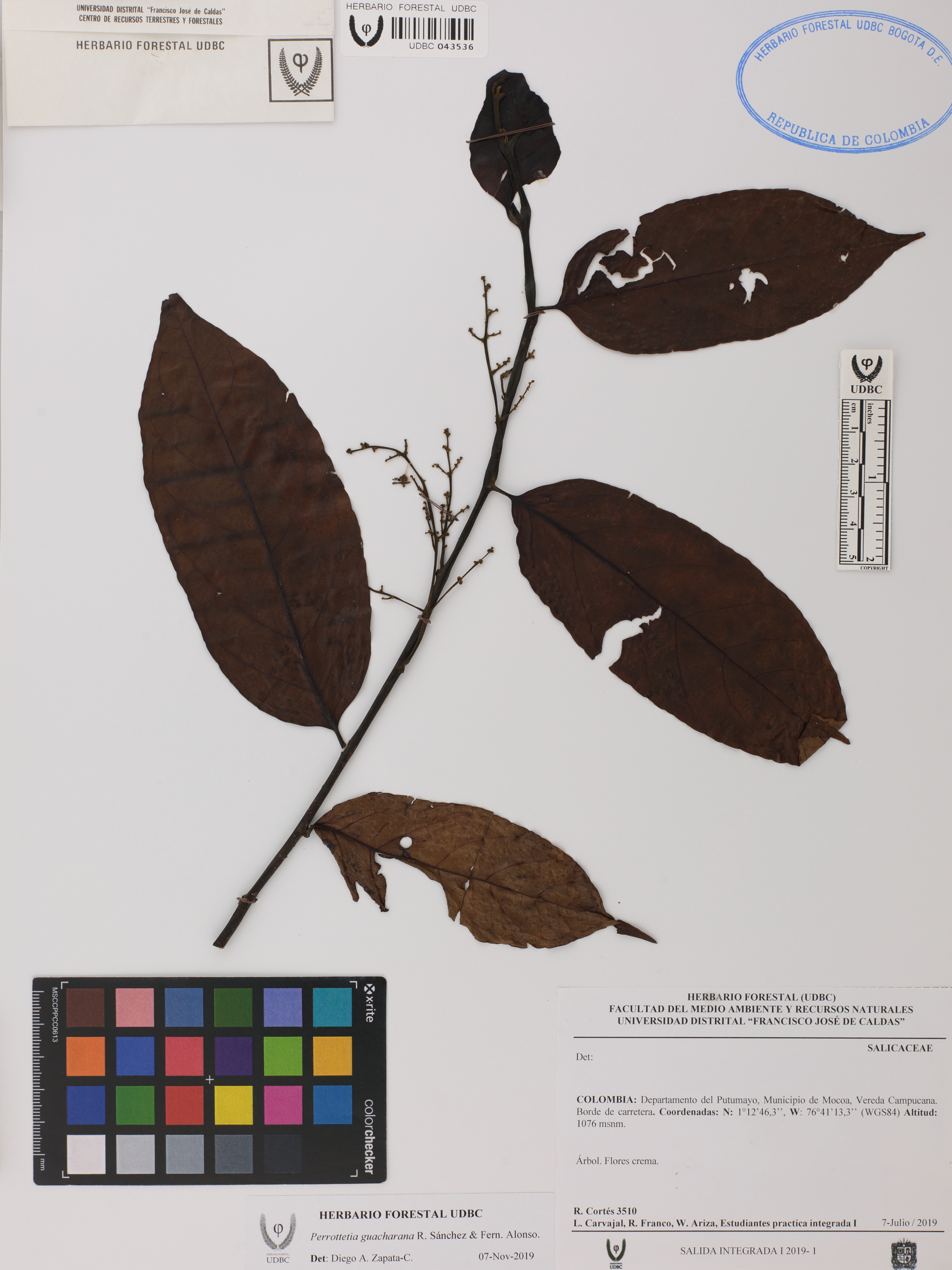Fotografía del ejemplar Cortés, R. 3510, determinado como Perrottetia guacharana en el año 2019