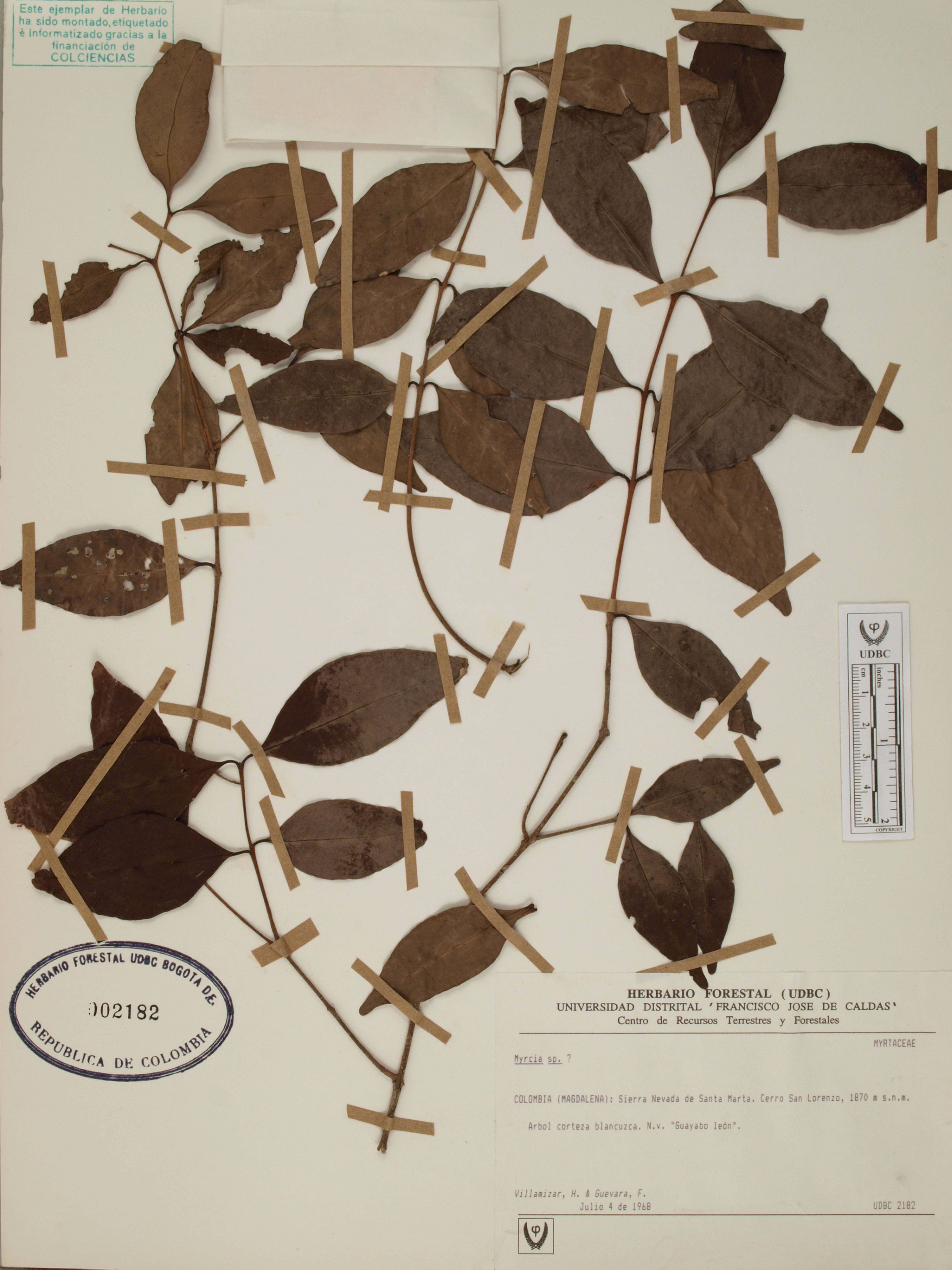 Fotografía del ejemplar Villamizar, H., determinado como Myrcia sp.