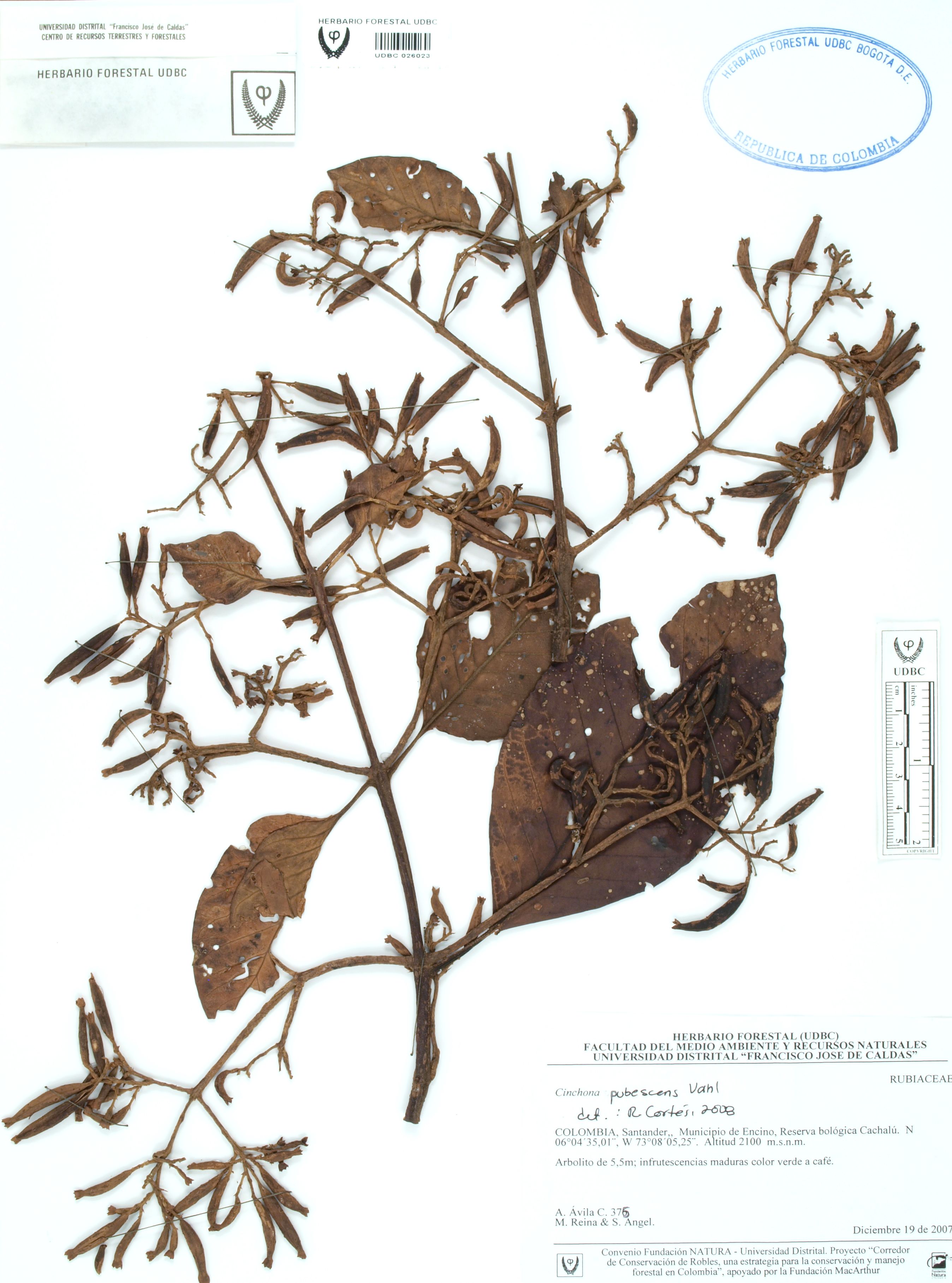 | dc.description | Fotografía del ejemplar Ávila, F. 375, determinado como Cinchona pubescens en el año 2008 | |