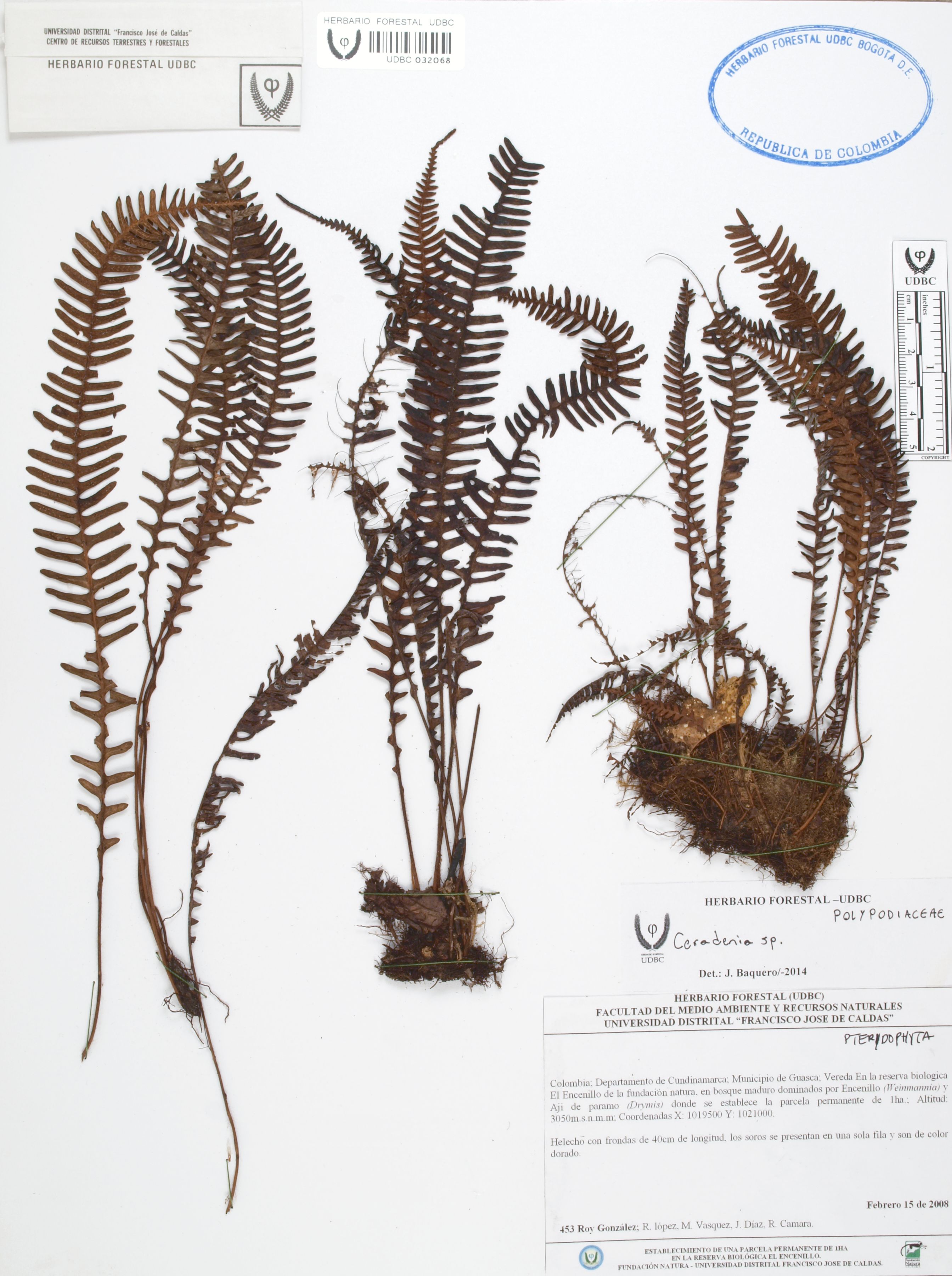 | dc.description | Fotografía del ejemplar González, R. 453, determinado como Ceradenia sp. en el año 2014 | |