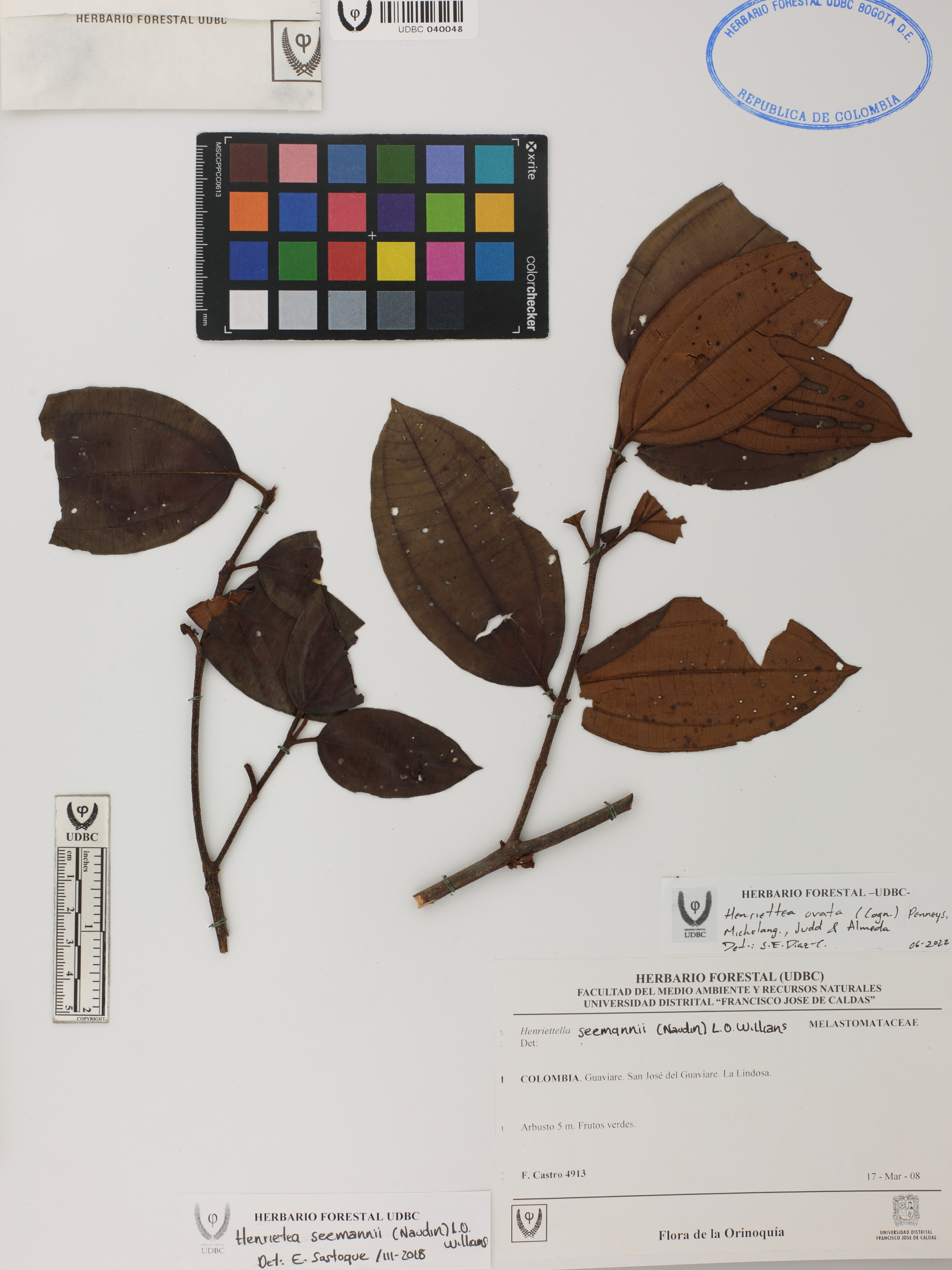 Fotografía del ejemplar Castro, F. 4913, determinado como Henriettea ovata en el año 2022
