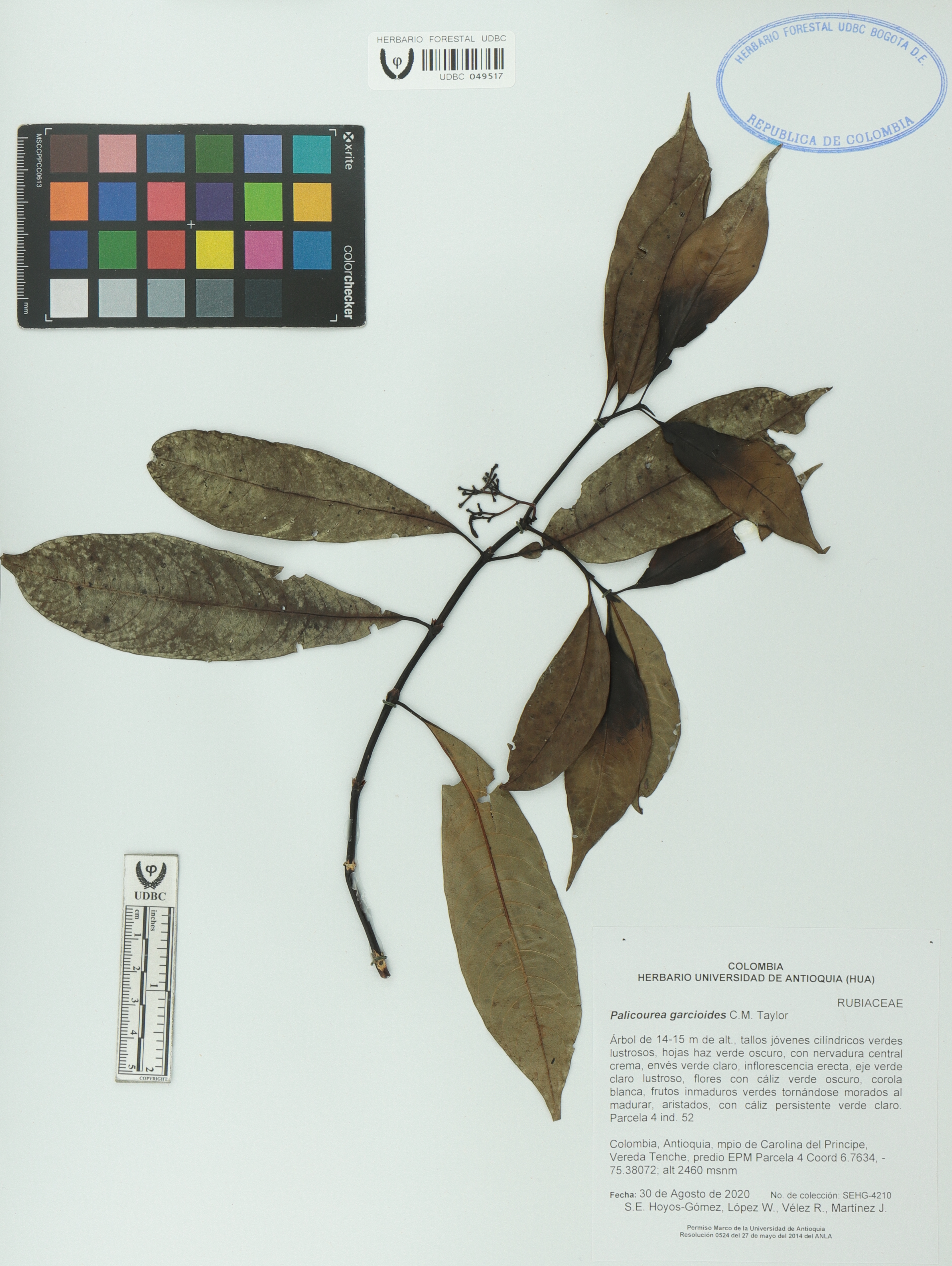 Fotografía del ejemplar Hoyos-G., S. 4210, determinado como Palicourea garcioides