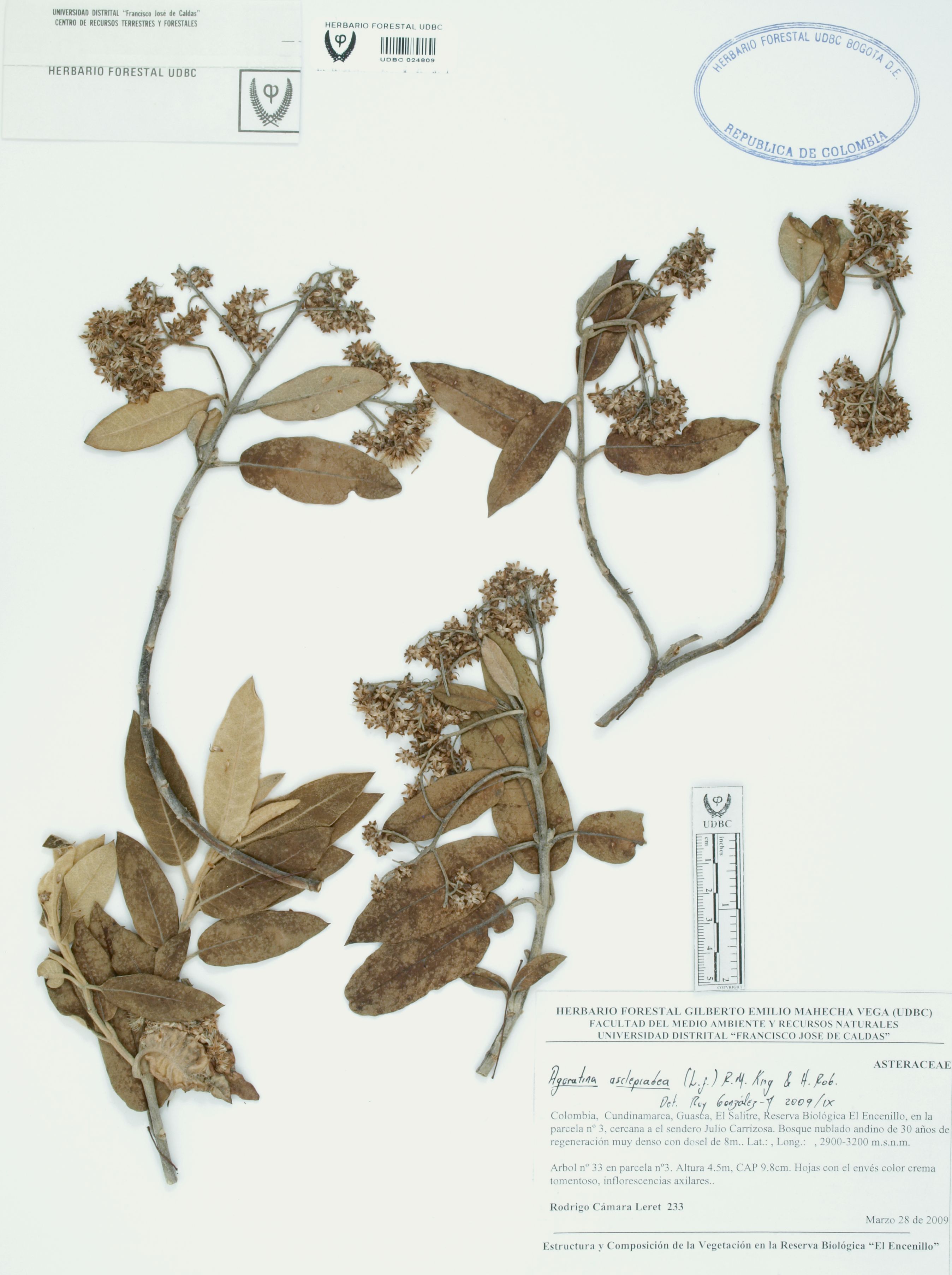 | dc.description | Fotografía del ejemplar Cámara, R. 233, determinado como Ageratina asclepiadea en el año 2009 | |