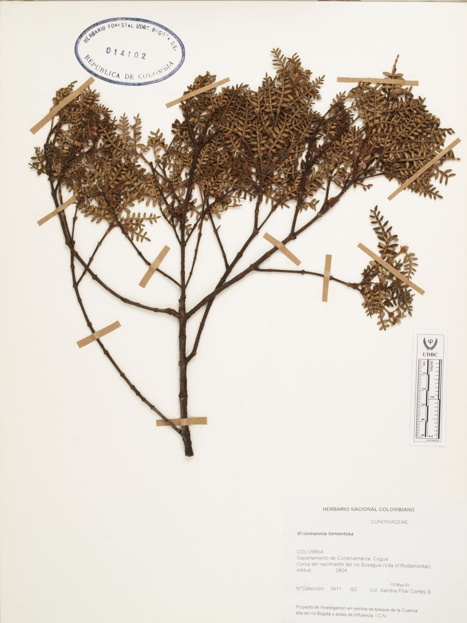 Fotografía del ejemplar Cortés, S. 3411, determinado como Weinmannia tomentosa