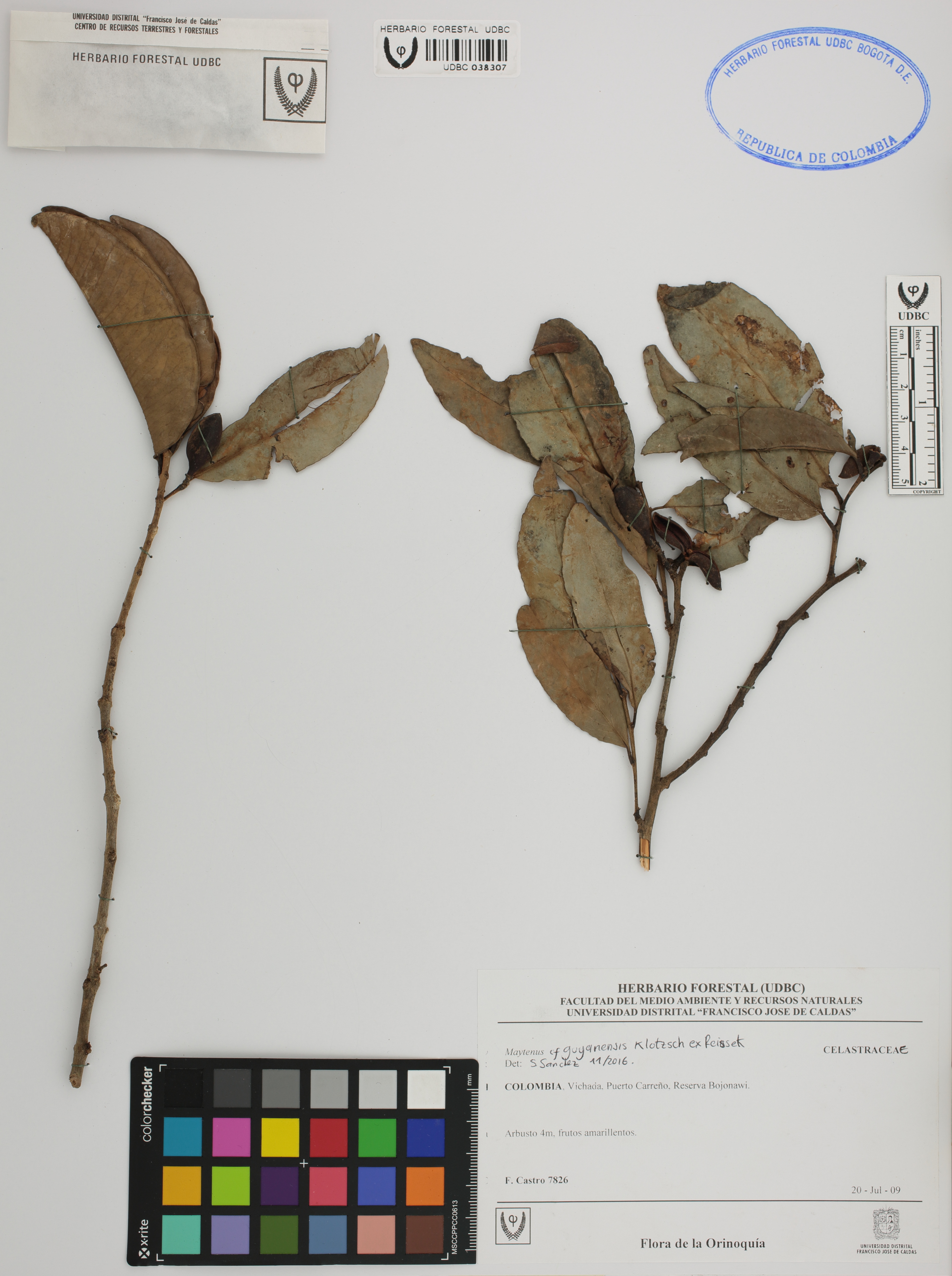 | dc.description | Fotografía del ejemplar Castro, F. 7826, determinado como Maytenus guyanensis en el año 2016 | |