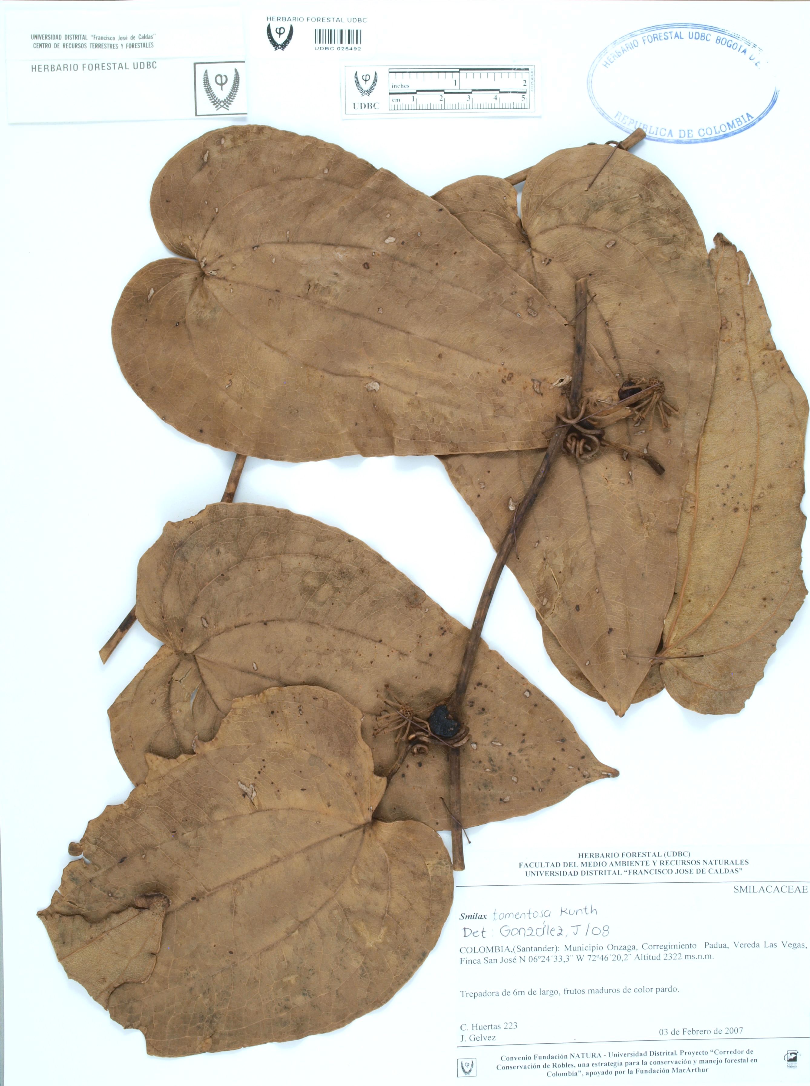 Fotografía del ejemplar Huertas, C. 223, determinado como Smilax tomentosa en el año 2008