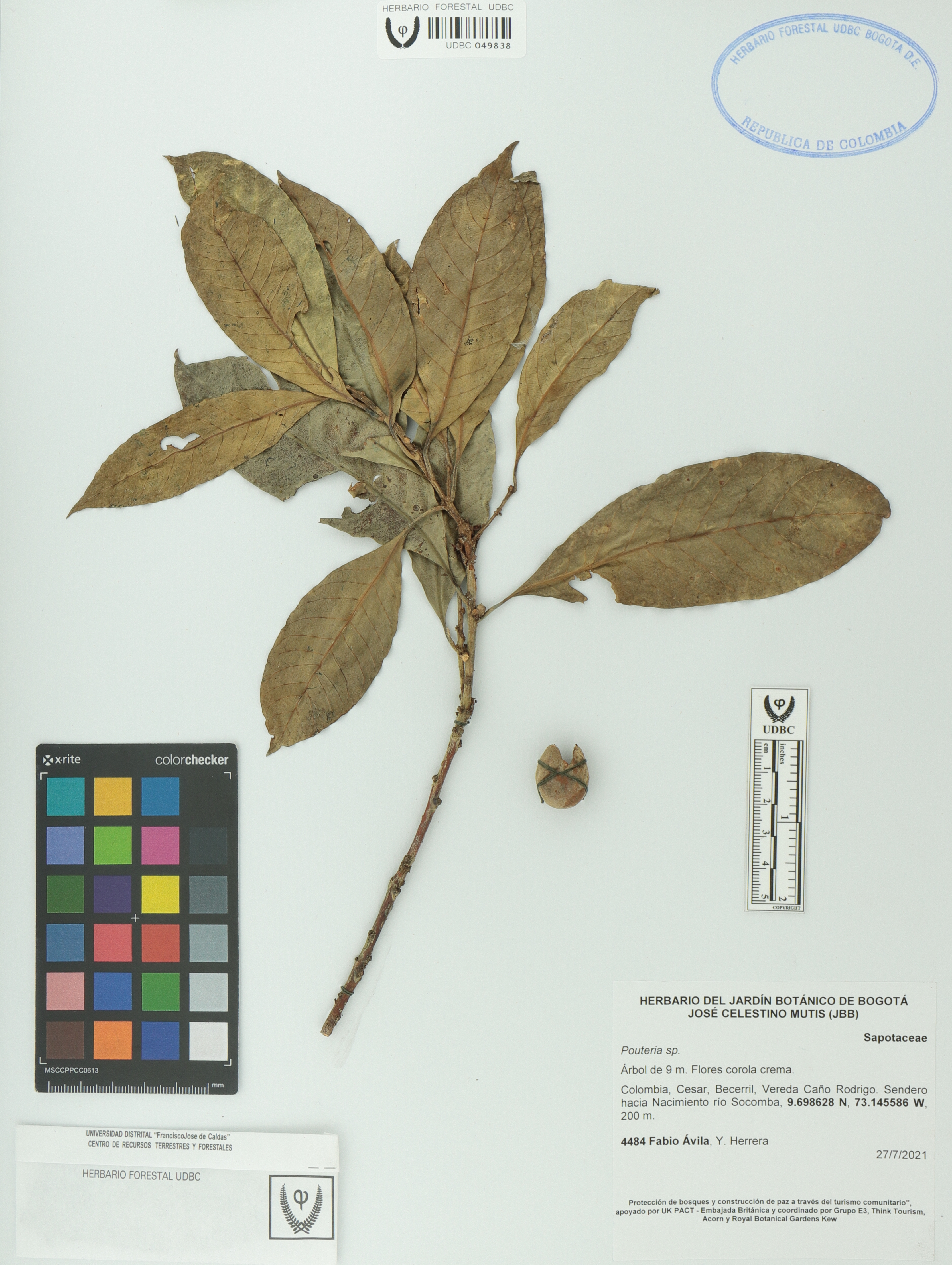 Fotografía del ejemplar Ávila, F. 4484, determinado como Pouteria sp.