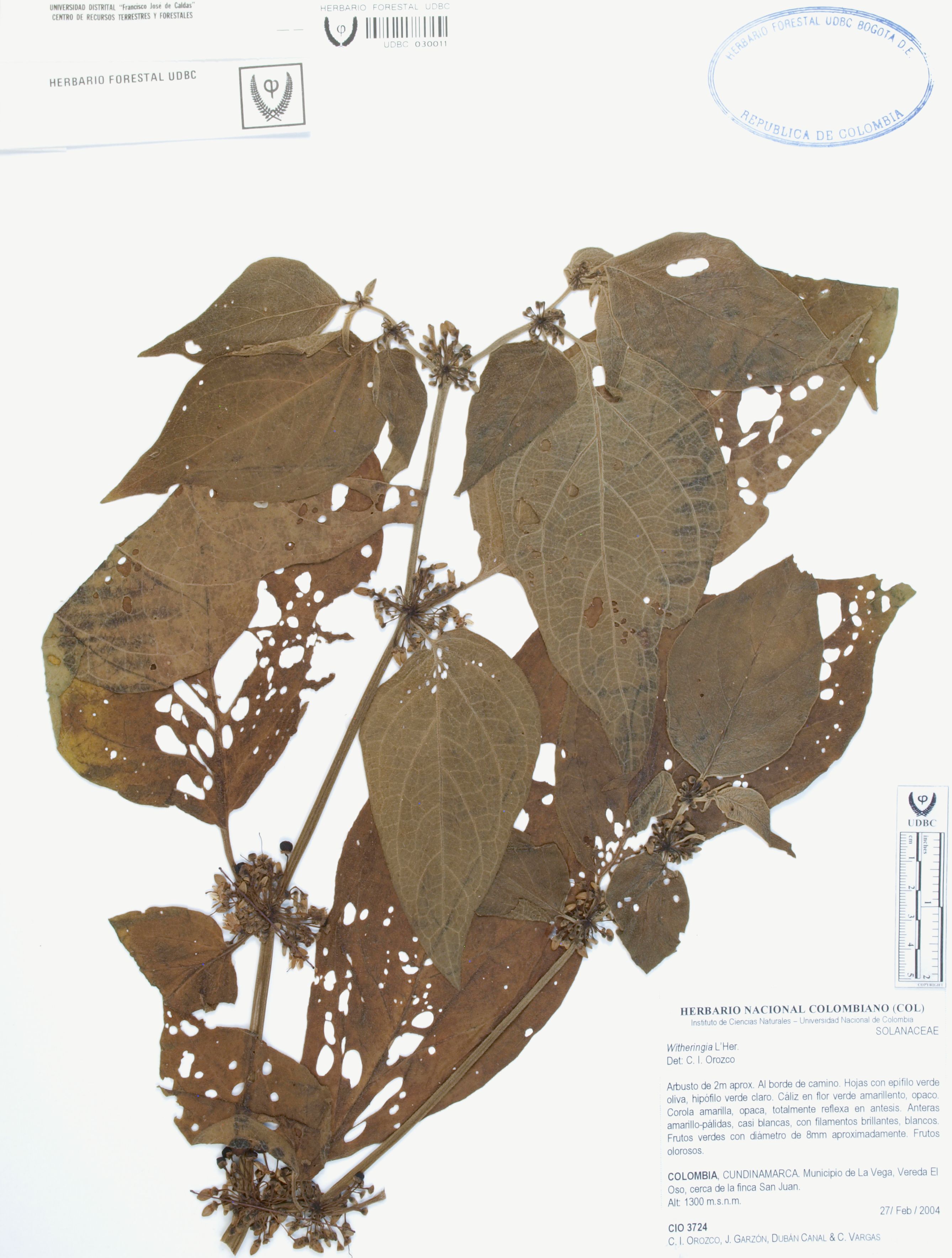 Fotografía del ejemplar Orozco, C. 3724, determinado como Witheringia sp.