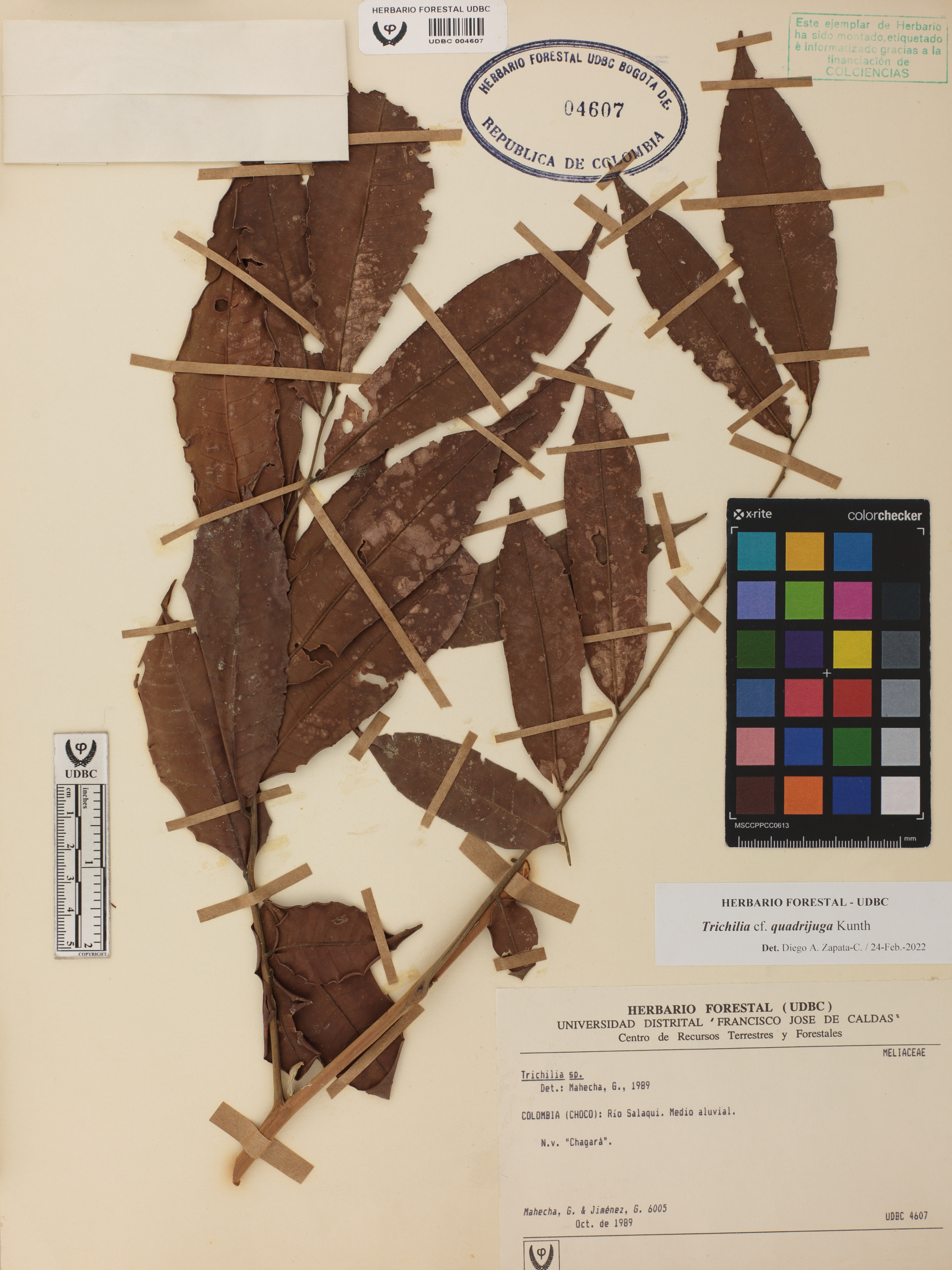 Fotografía del ejemplar Mahecha, G. 6005, determinado como Trichilia quadrijuga en el año 2022